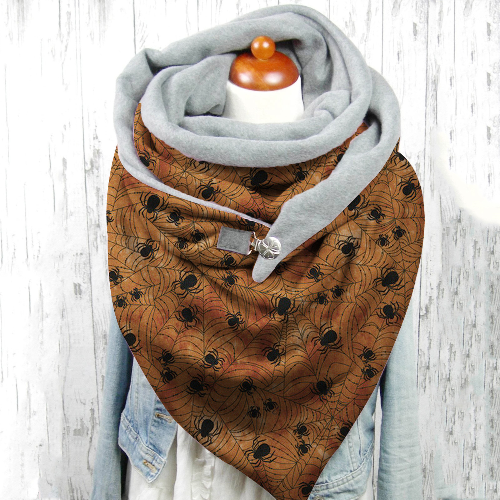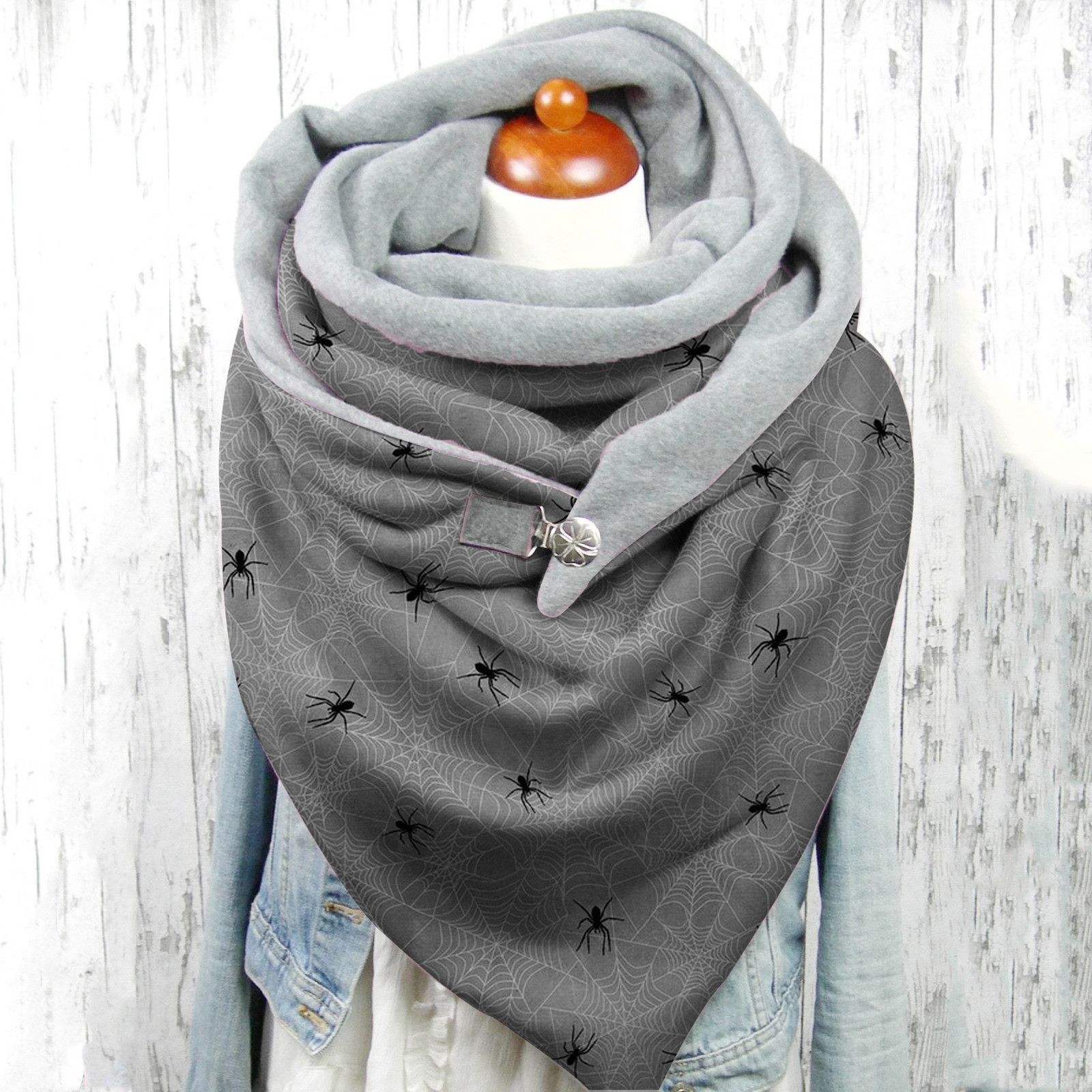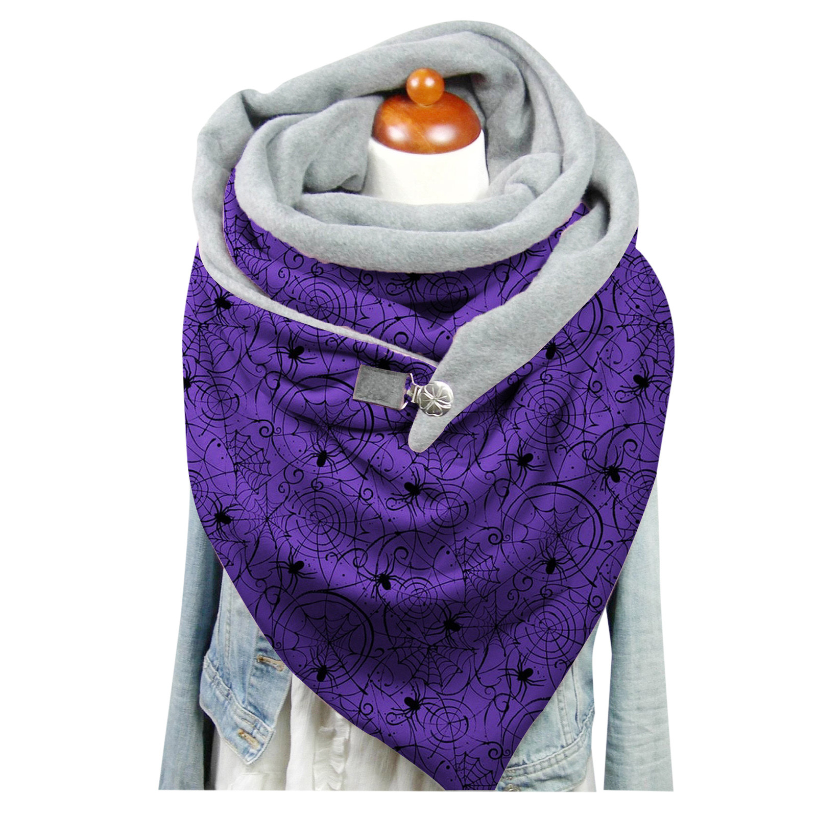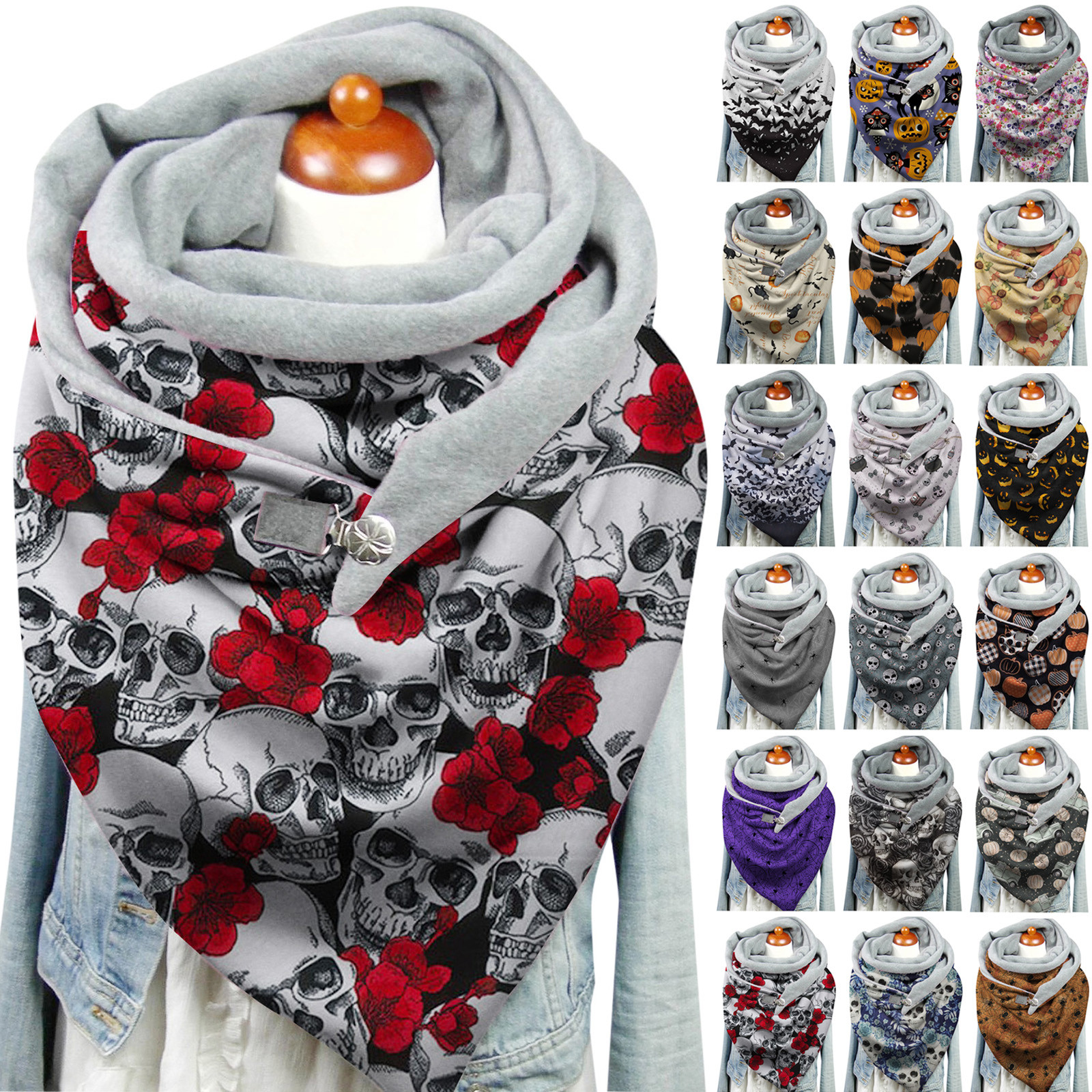 Модные зимние теплые повседневные шарфы на пуговицах с принтом на Хэллоуин