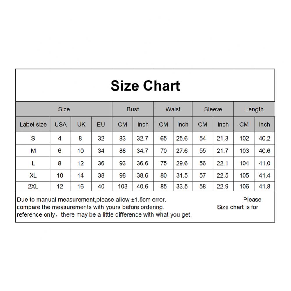 [Наш Размер XL] Обхват груди: 98 см/38,58 дюйма, обхват талии: 80 см/31,50 дюйма, длина рукава: 57 см/22,44 дюйма, длина: 105 см/41,34 дюйма (прибл.)