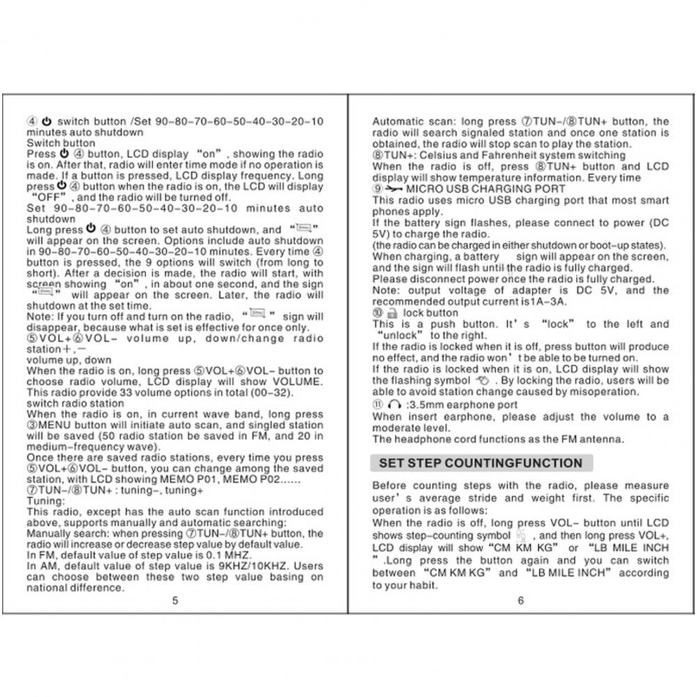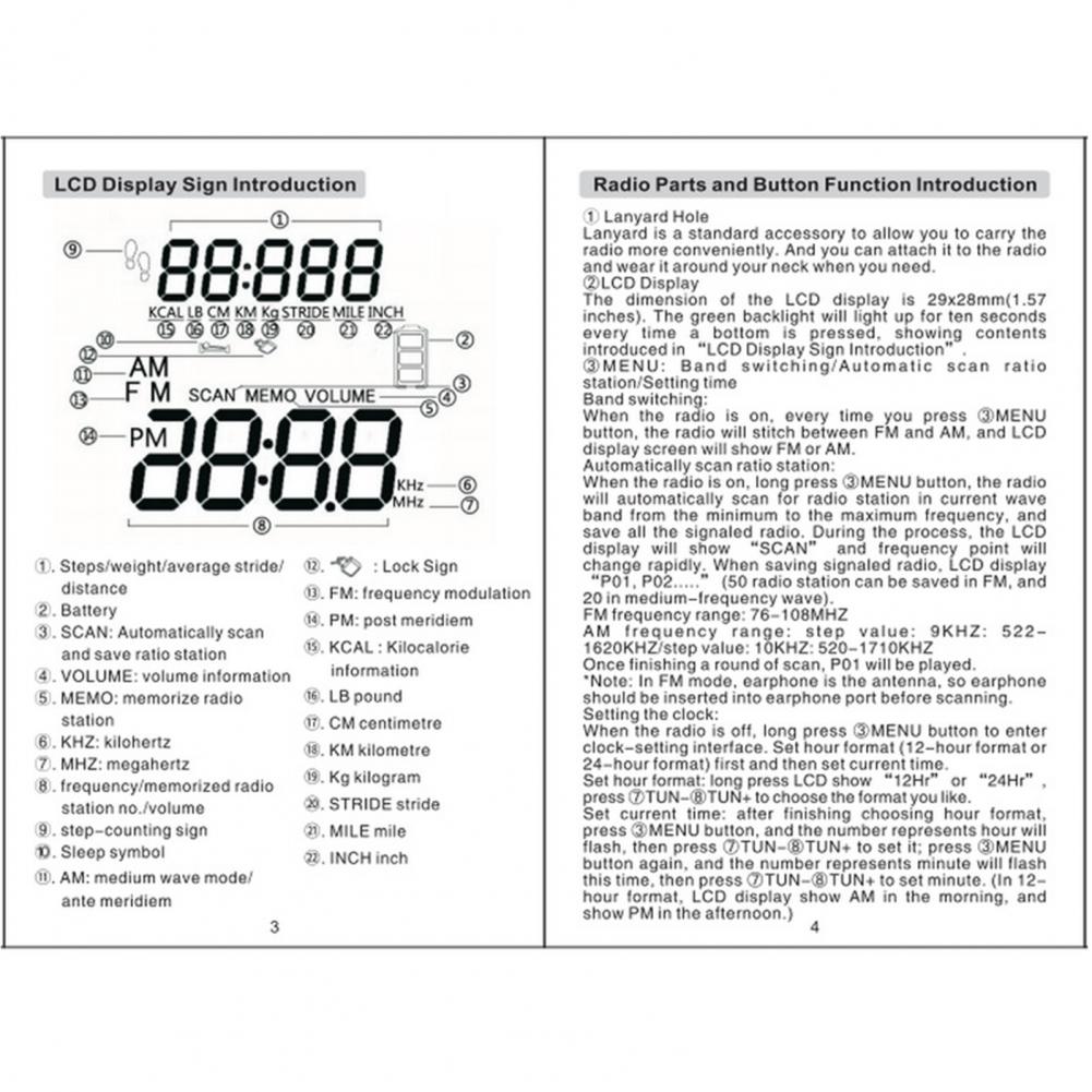 С большим и четким ЖК-дисплеем, легко узнать частоту/громкость/режим диапазона/время/символ батареи/символ зарядки/символ блокировки/символ сна, и он прост в эксплуатации в ночное время.