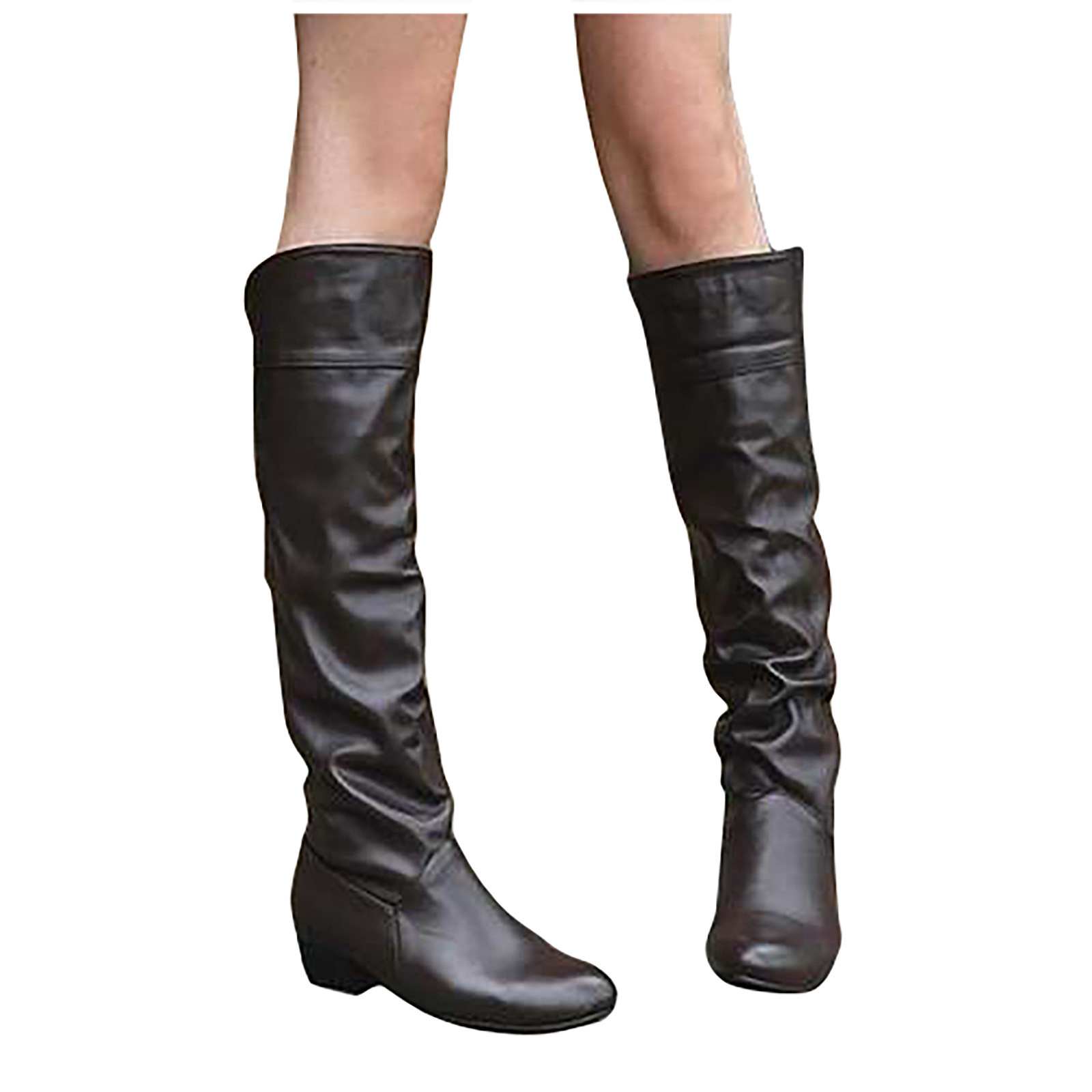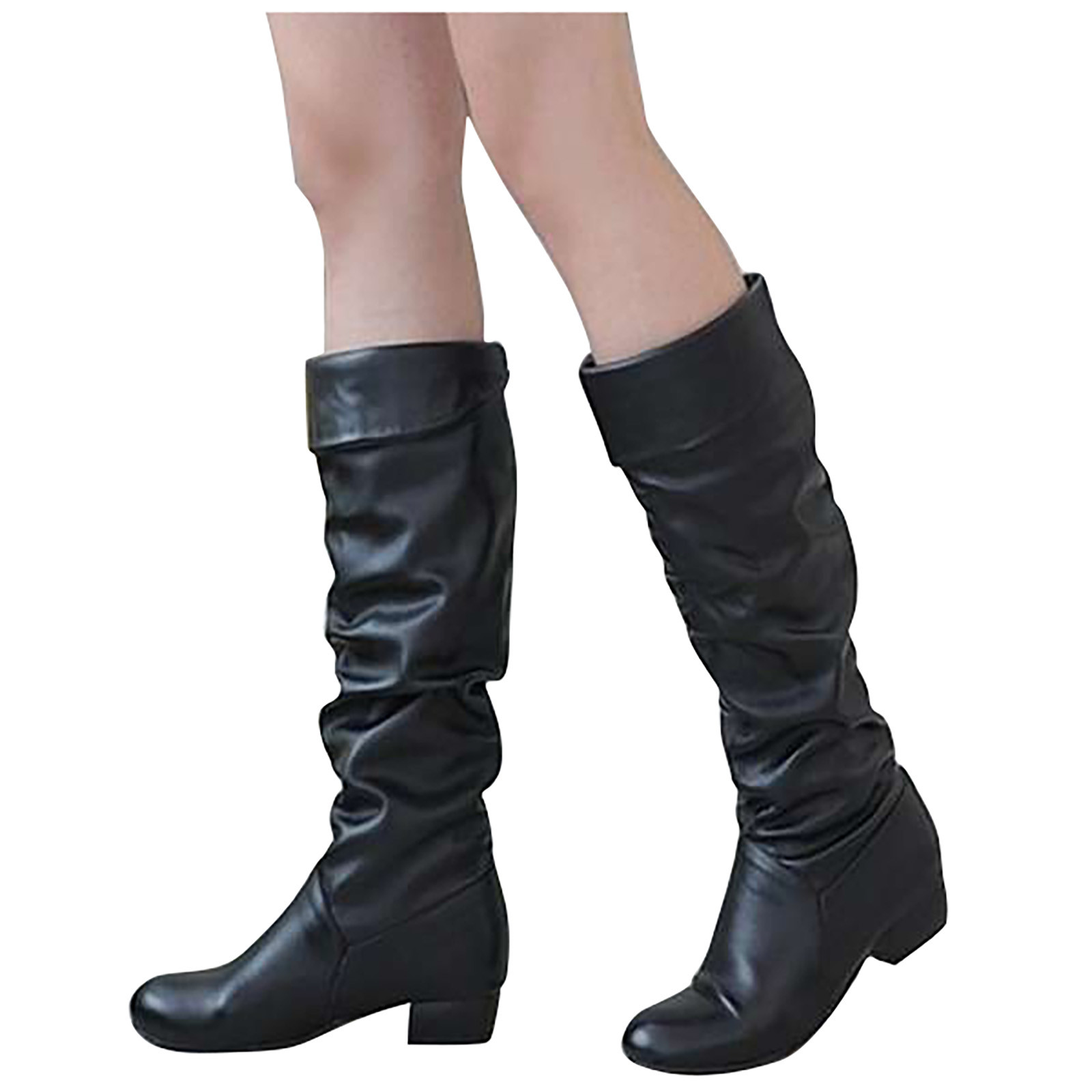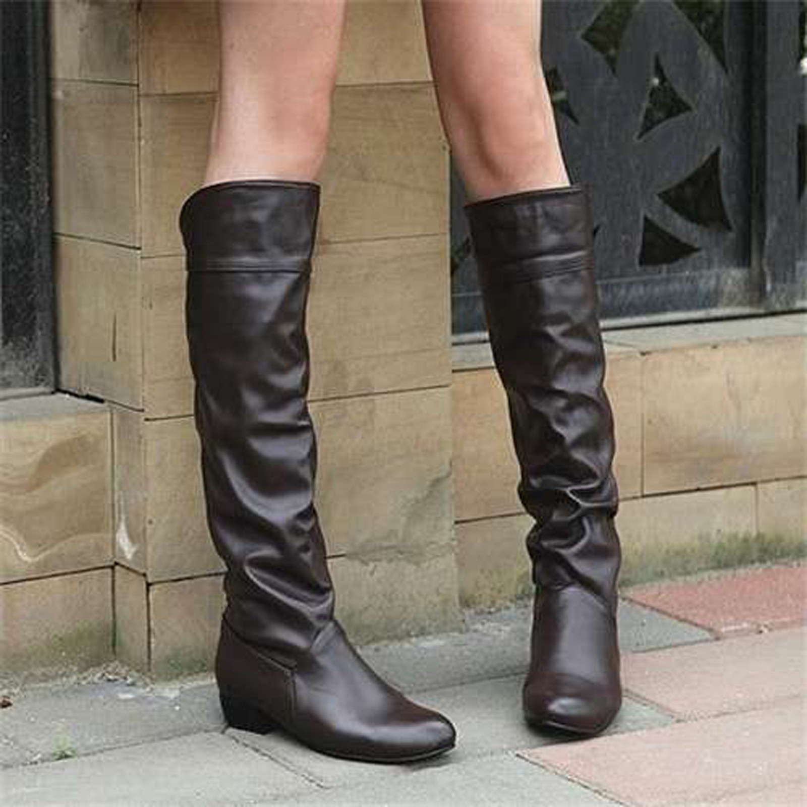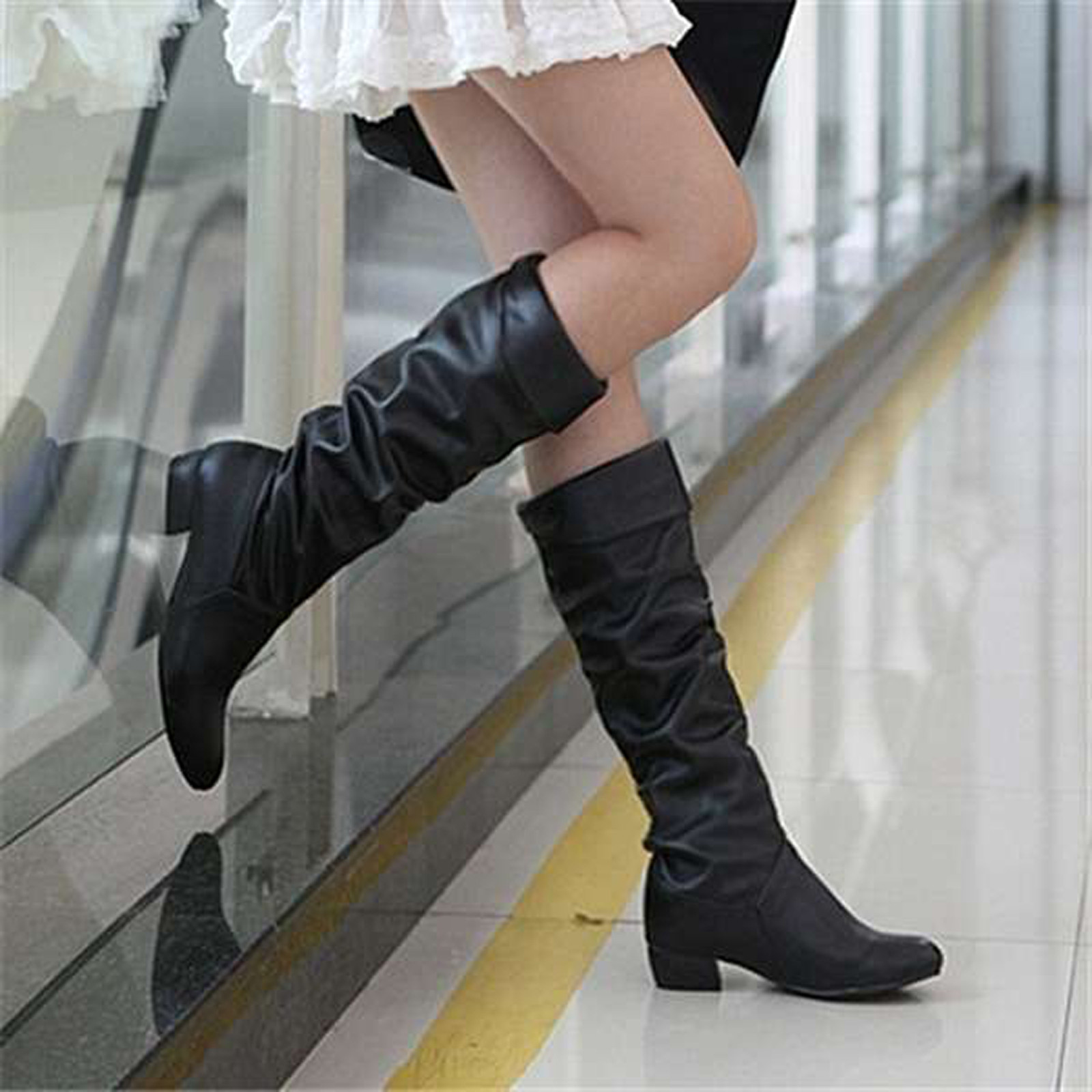 Женские зимние модные сапоги до колена; Высокие сапоги-трубы на плоской подошве; Сапоги для верховой езды