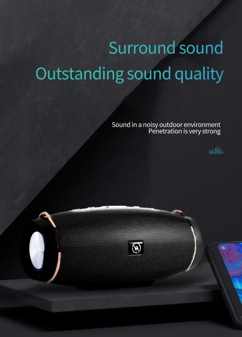 4. Стереозвук: левый и правый двойные басовые диафрагмы, 4 блока лопаются с мощными басами, мощный объемный звук 360 °, что позволяет наслаждаться 9D шокирующим слуховым праздником.