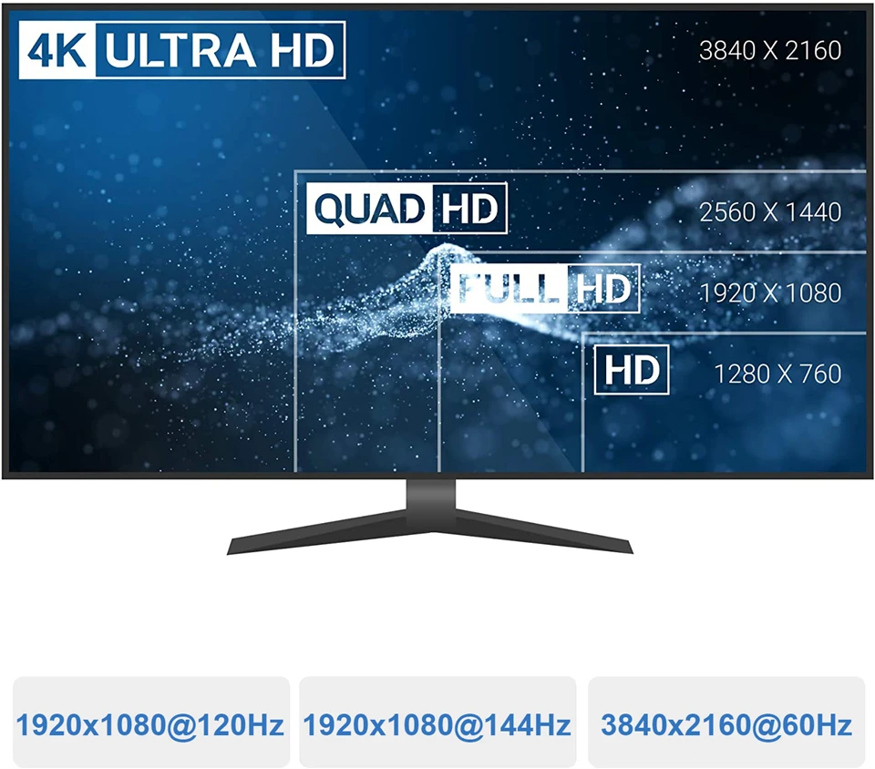 · Поддержка 4K и высокое качество видео и аудио: UHD 4K (3840x2160) @ 60 Гц, 1080p (1920x1080) @ 120 Гц/144 Гц, аудио: 7,1 канальный объемный звук с частотой дискретизации до 192 кгц. Обратите внимание, что игра совместима с родным 4K @ 60 Гц (например, XBOX One S) будет отображаться в 1080p.