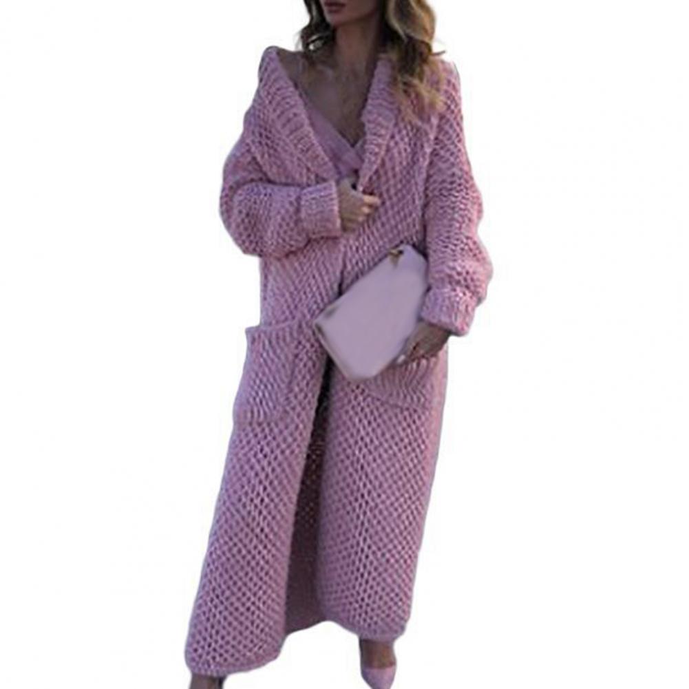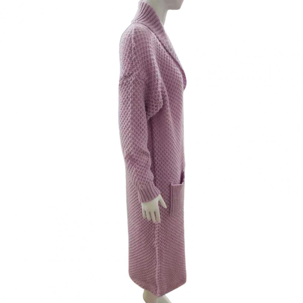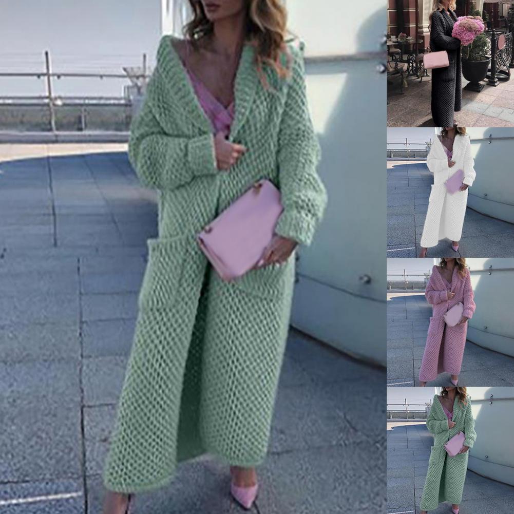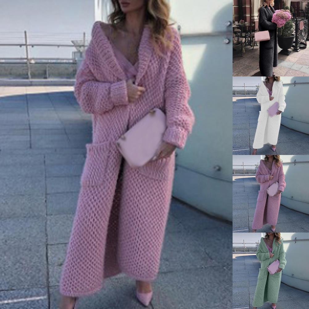 Женский Повседневный свитер, пальто, длинный кардиган, однотонный жакет с карманами, Осень-зима, отворот, длинный рукав, теплый свитер, куртка, уличная одежда