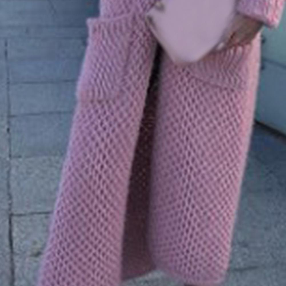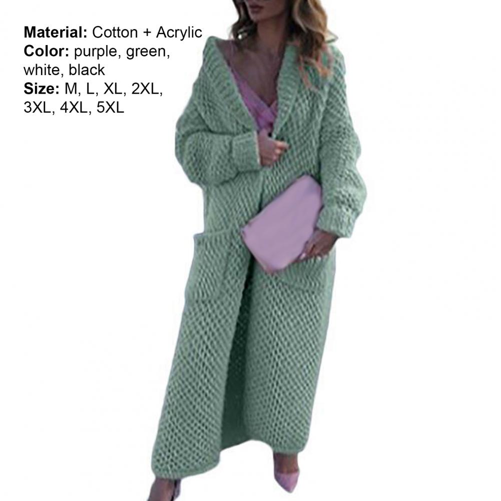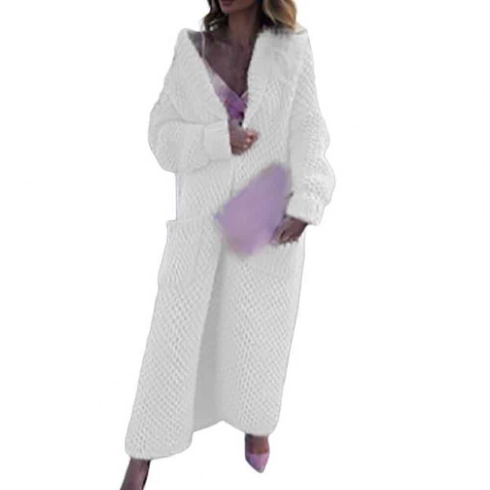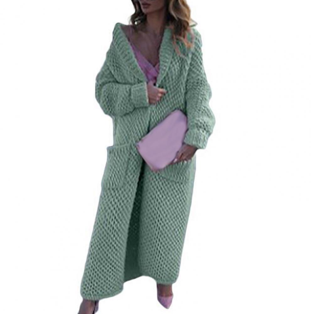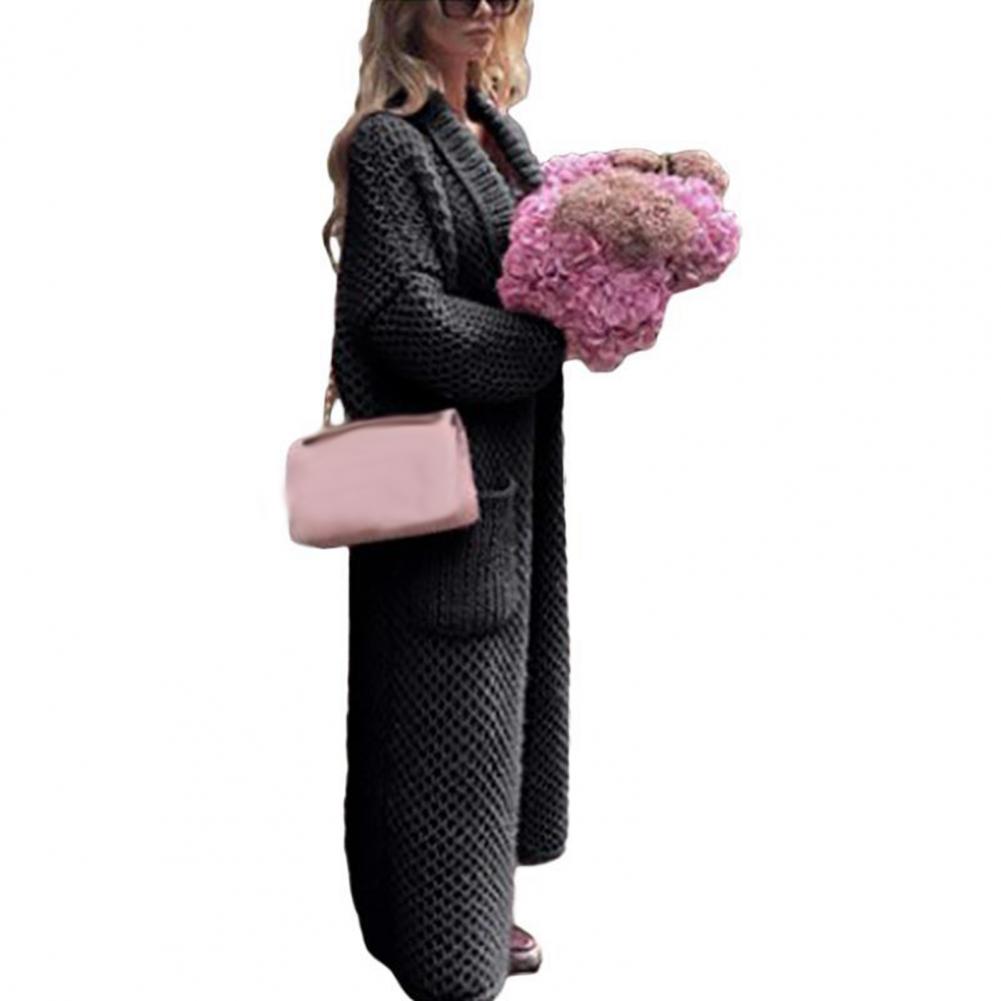 Женский Повседневный свитер, пальто, длинный кардиган, однотонный жакет с карманами, Осень-зима, отворот, длинный рукав, теплый свитер, куртка, уличная одежда