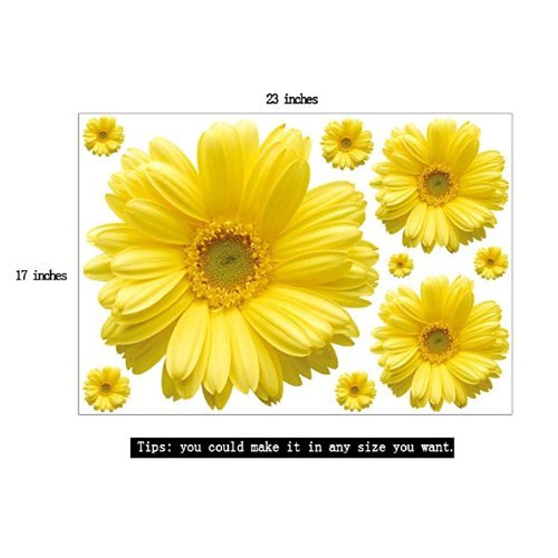 46x65cm Yellow Chrysanthemums Daisy Flowers Wall Sticker Decal Home Decor for Living Bed Room Study TV Wall