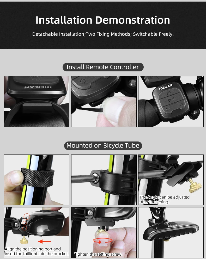 Пульт дистанционного управления беспроводным образом подключен к заднему свету, который чувствителен и надежен, и может легко управлять задним светом: Повернуть влево или вправо, напомнить пешеходам и транспортным средствам позади, и обеспечить безопасность для ночной езды
