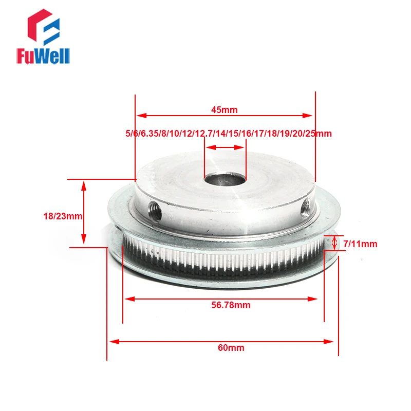 S2M-90T Timing Pulley Aluminum Alloy S2M 90Teeth Transmission Pulley 6/8/10/20/25mm Bore 7mm/11mm Belt Width Toothed Gear Wheel