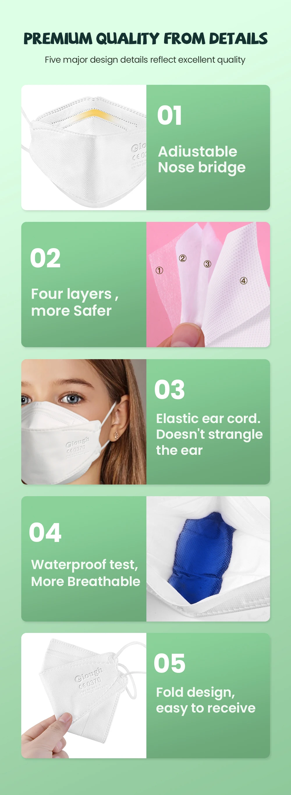 ④ Высококачественный защитный эффект. Его защитный эффект такой же, как и маска KN95, европейская маска FFP2.