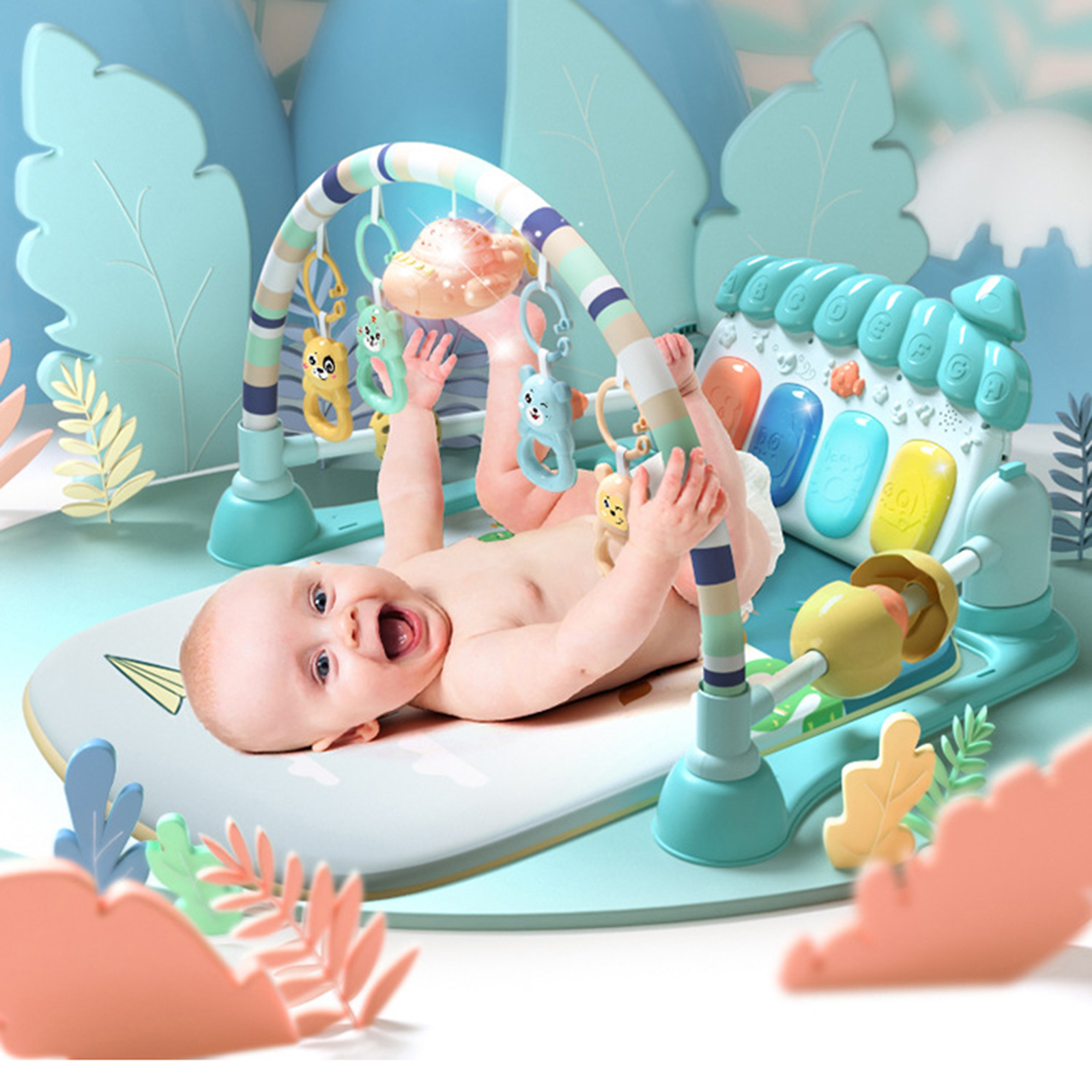 -Сочетает в себе игрушечное пианино и стойку для тренажерного зала, а также съемный коврик для ползания. Подходит для детей в возрасте 0-18 месяцев. Этот игровой коврик-настоящий «обязательный» для родителей и младенцев.