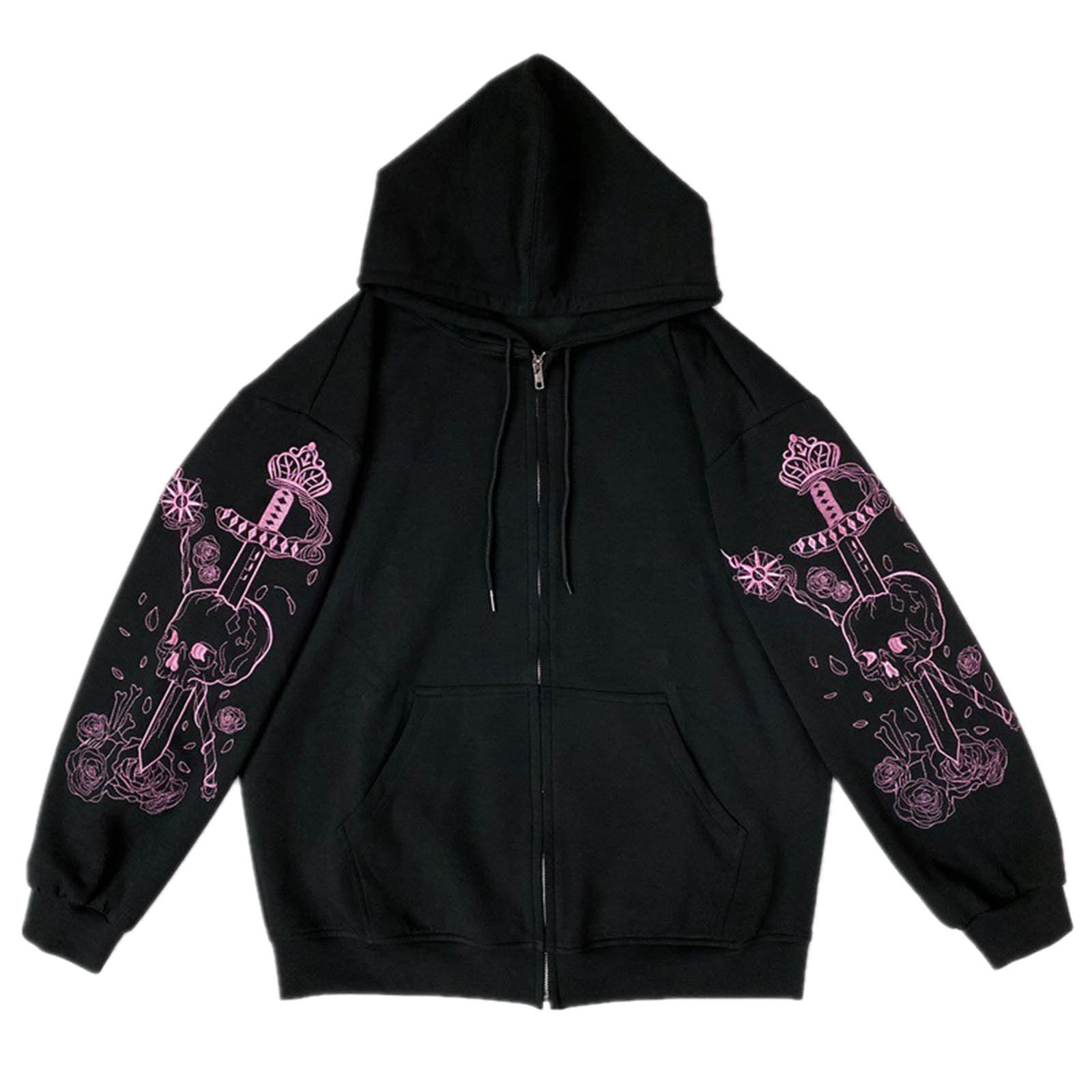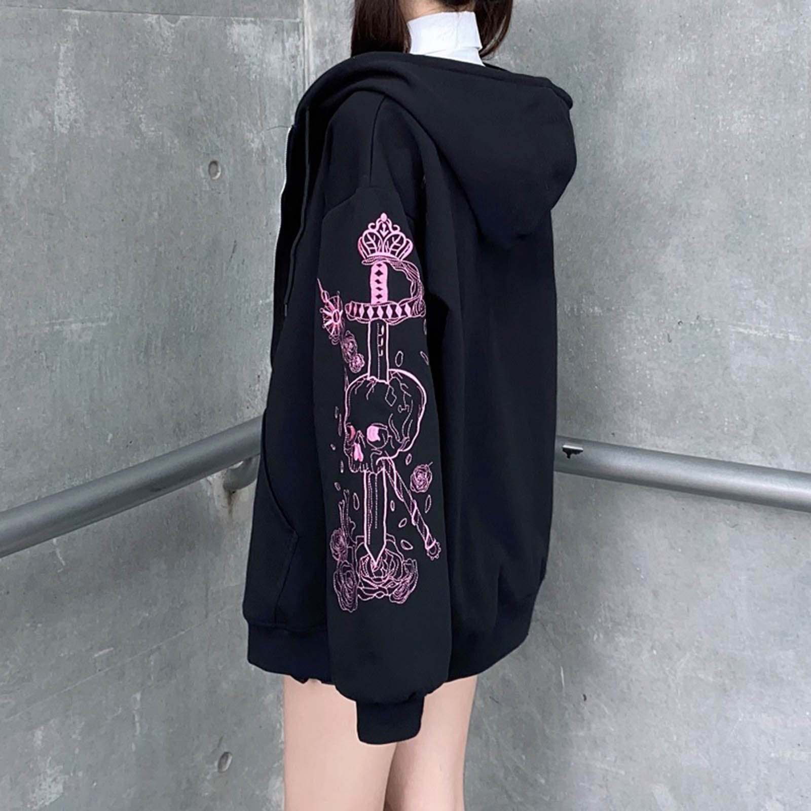 Женская свободная толстовка с капюшоном и принтом на молнии