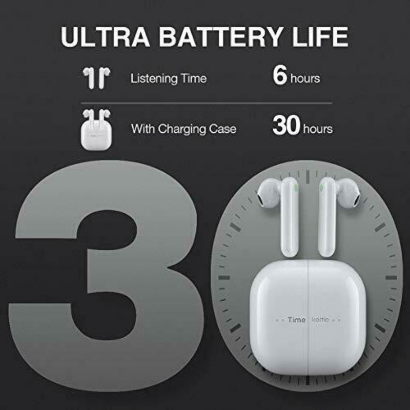 EarbudsBattery Life: 6 Hours (30 hours used with charging case)