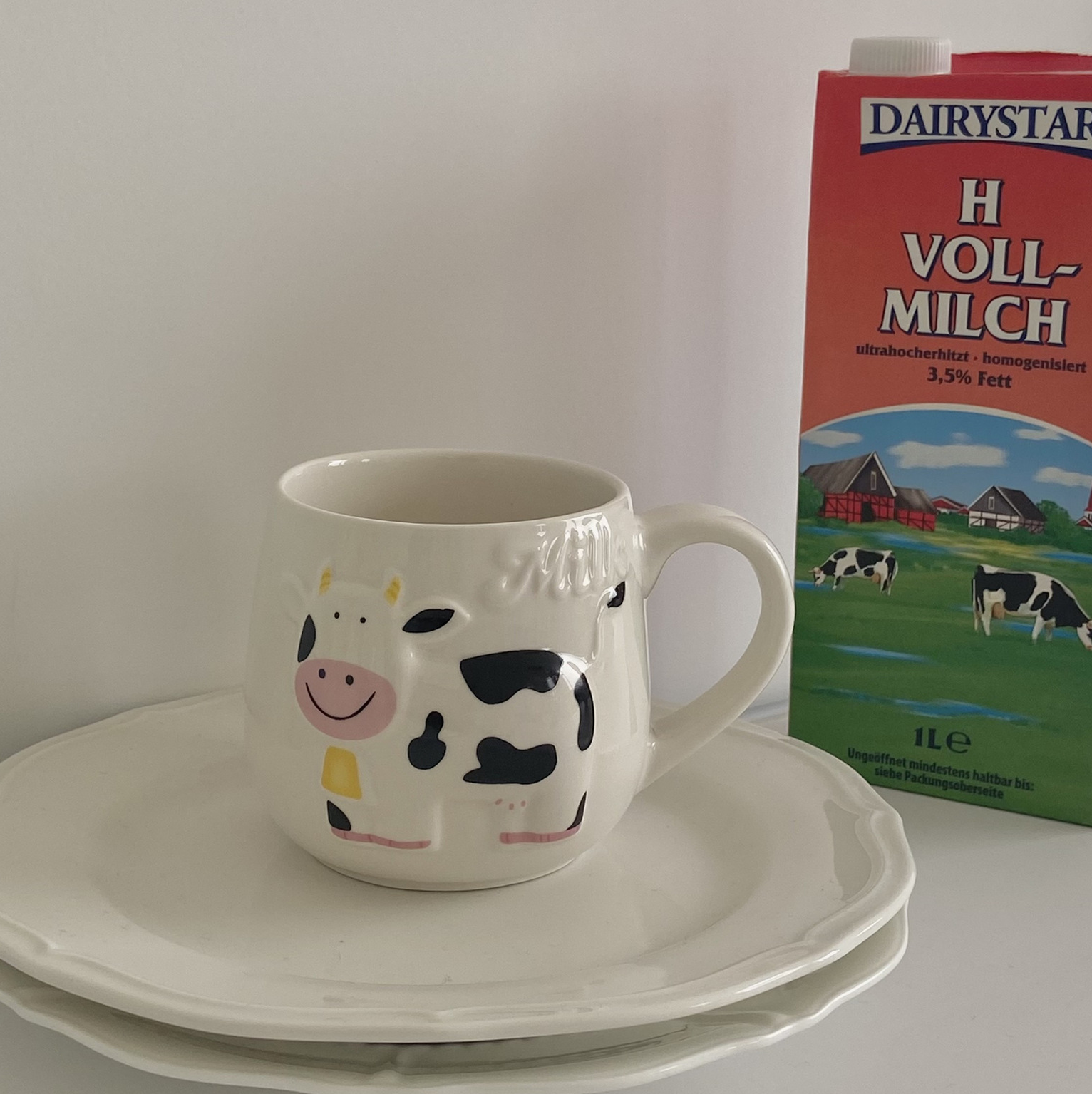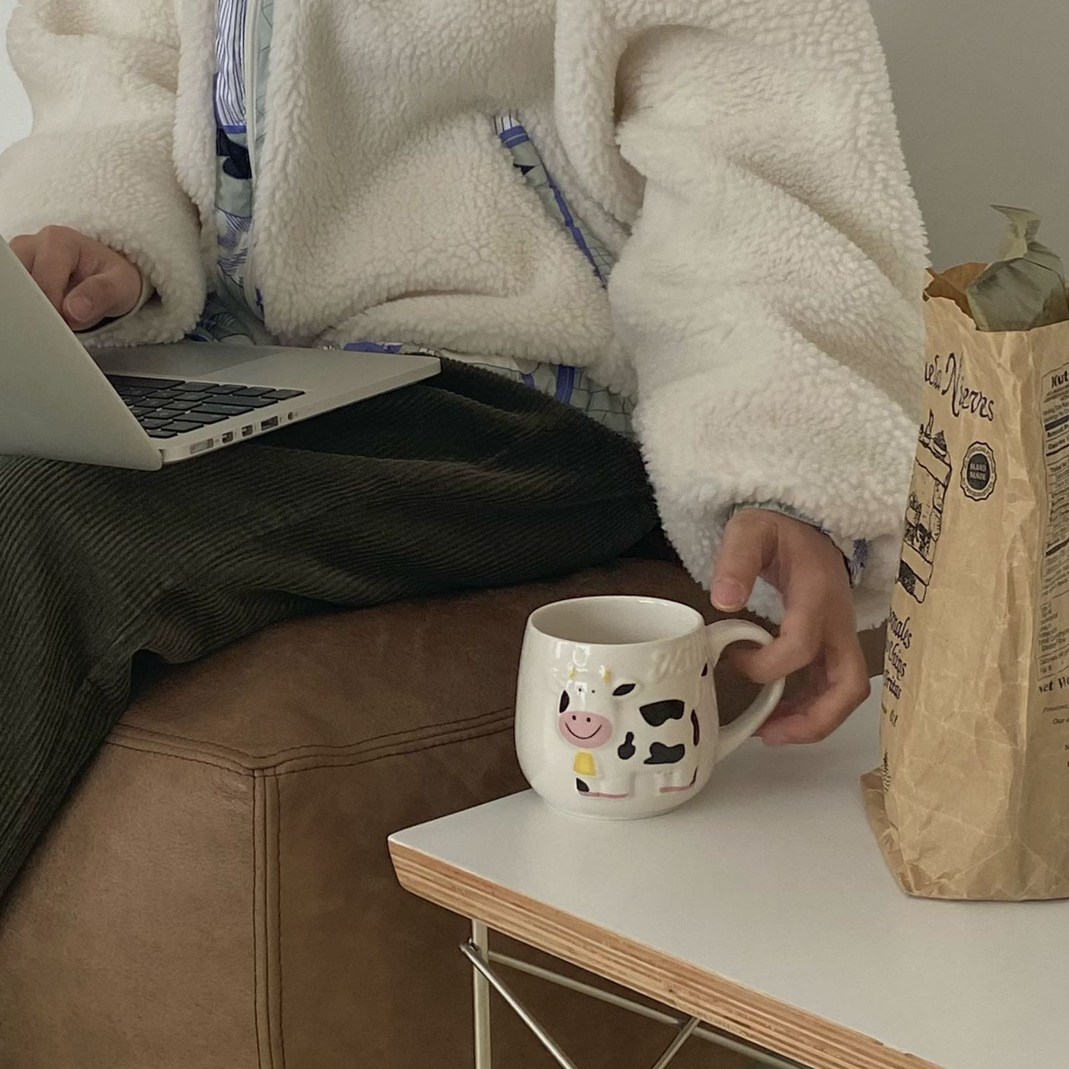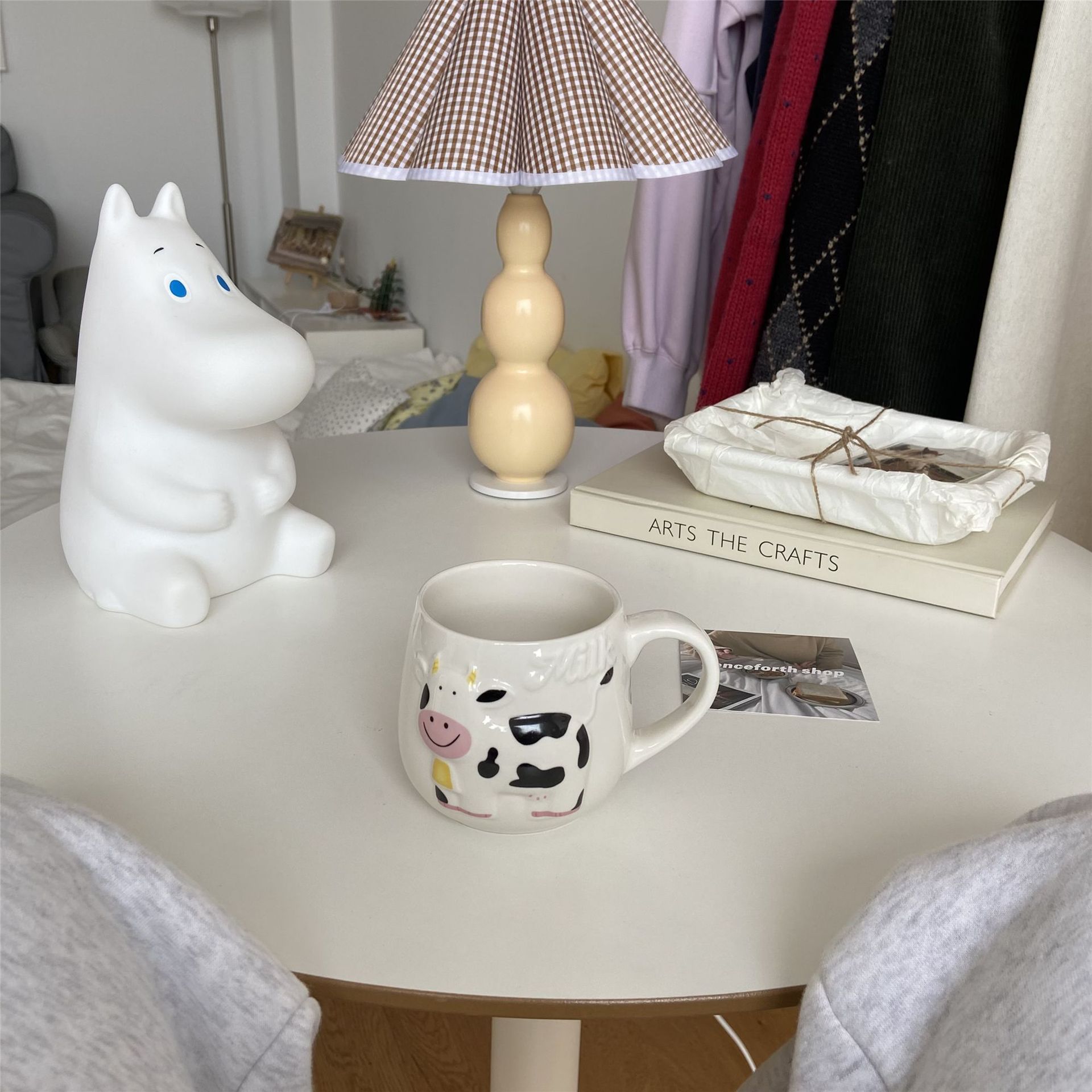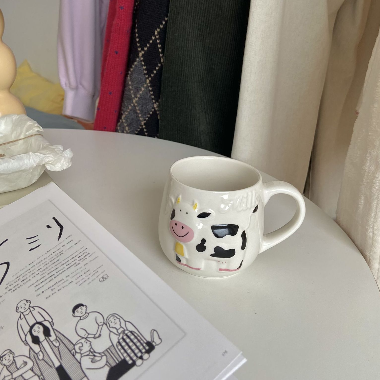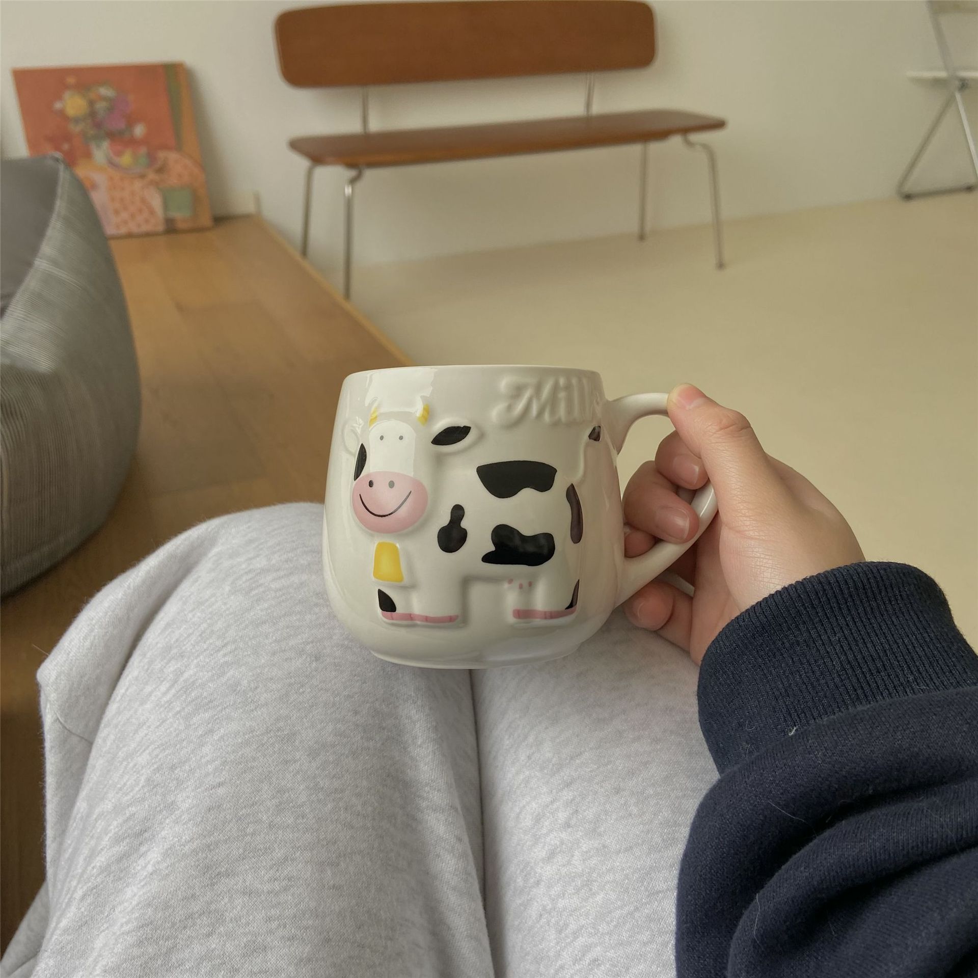 Милая корова керамические кружки креативный мультфильм дизайн кофе завтрак молоко и злаки тиснением большой чашки тела офиса дома керамические кружки