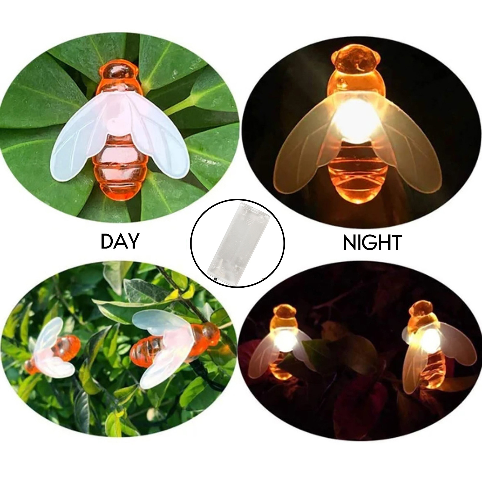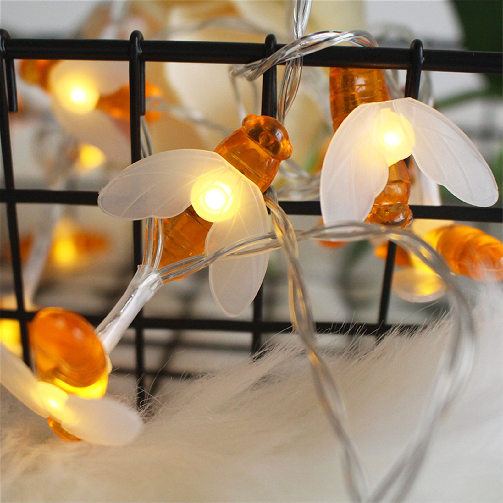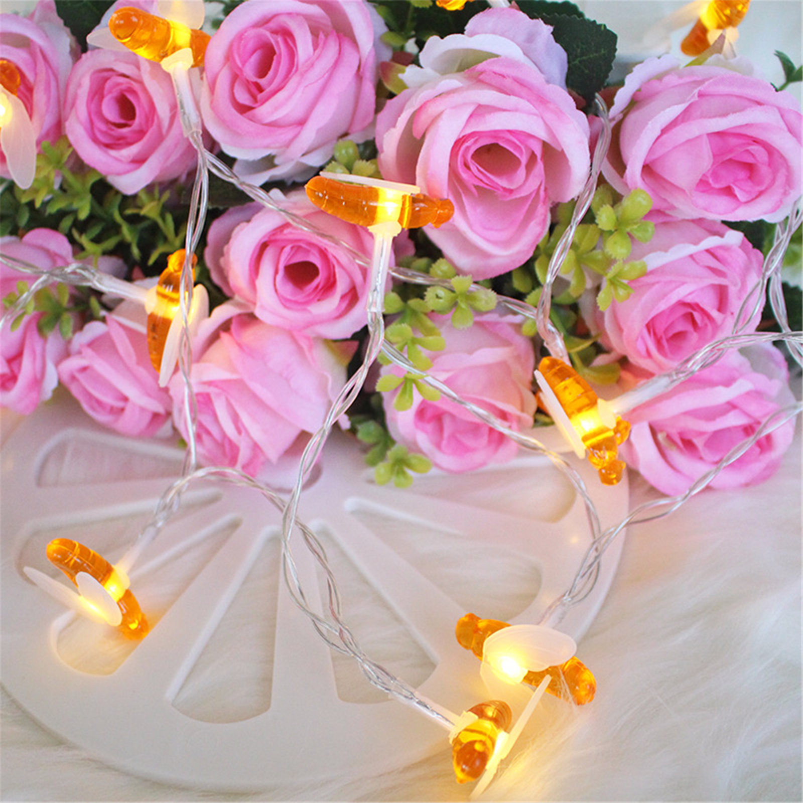 Уникальный дизайн с 10 теплыми цветными пчелами, висящими под проволокой для освещения ночью.