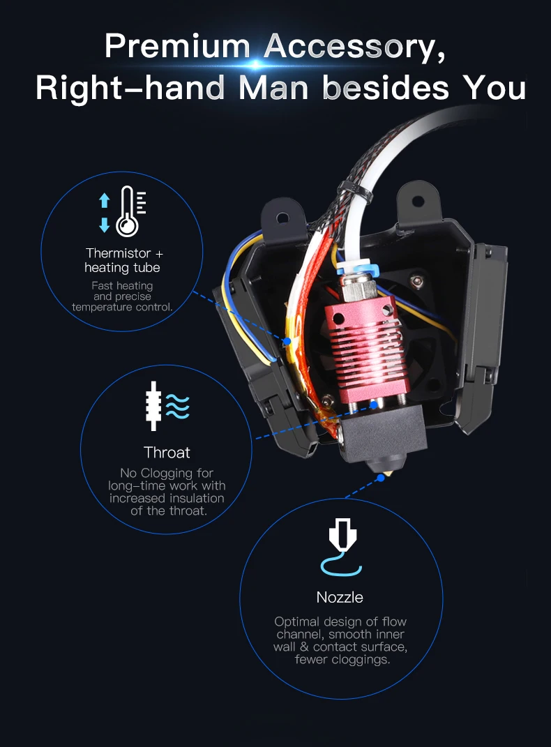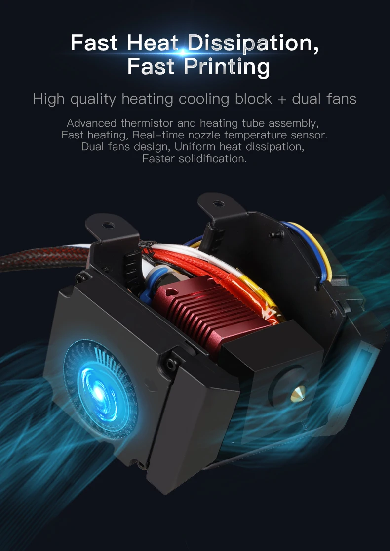 Расширенный термистор и нагревательная трубка в сборе, быстрый нагрев, датчик температуры сопла в реальном времени. Двойные вентиляторы