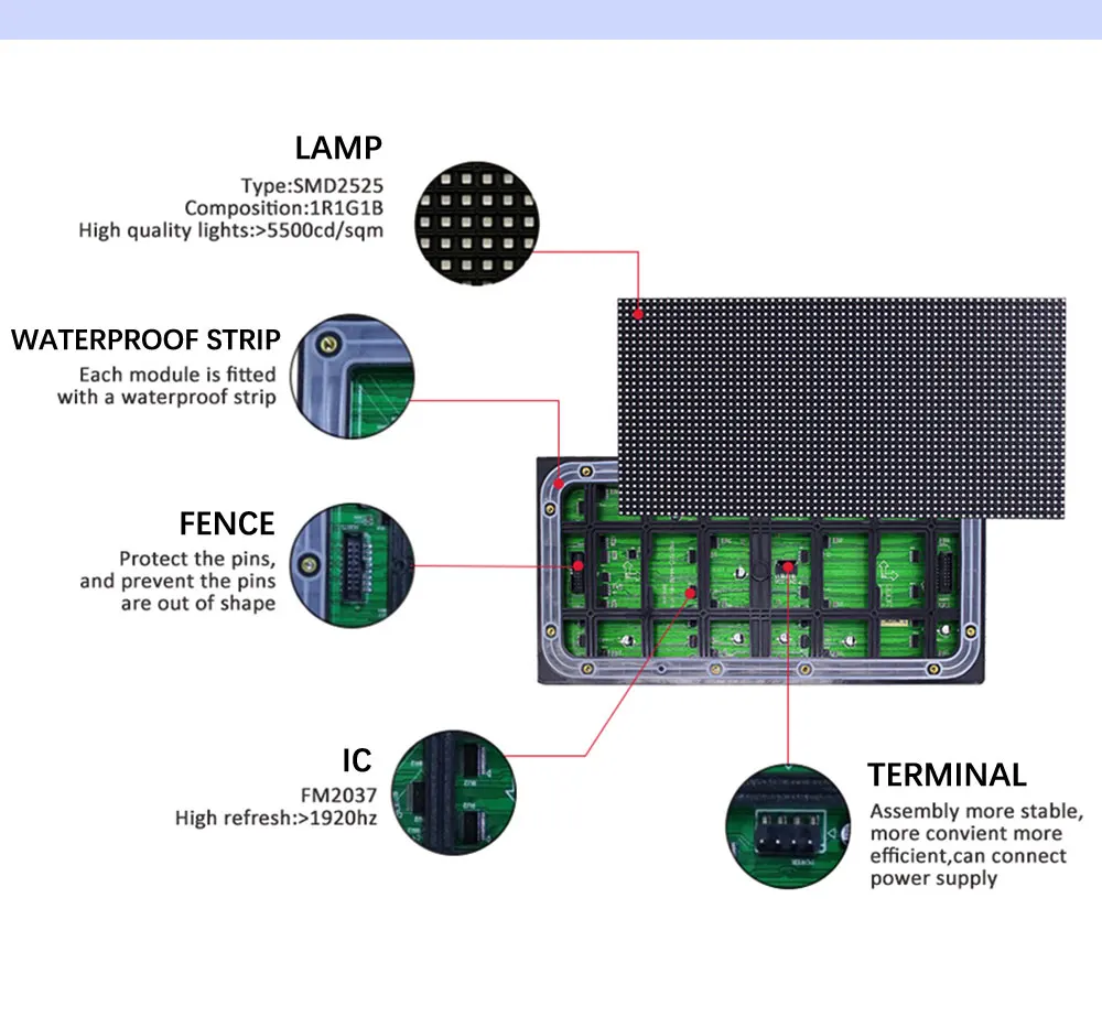 Услуги: Мы являемся поставщиком СВЕТОДИОДНЫЙ экраны с отличным качеством и 2-годовая гарантия на наши товары. Используйте чипы Epistar для наших продуктов, продаваемых в 20 + странах по всему миру. Среднее время выполнения составляет менее 15 дней. 12-летний опыт техническая команда, для того, чтобы решить проблему в вашу пользу в любое время!