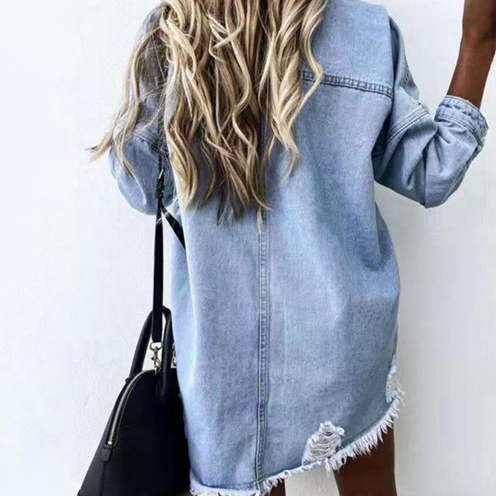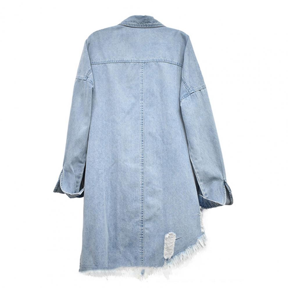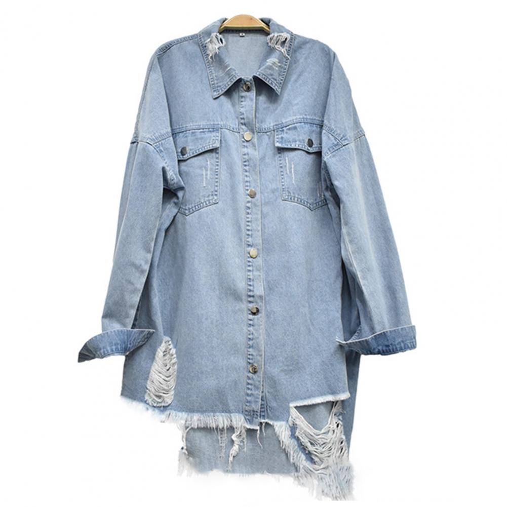 Женские куртки повседневные модные джинсовые синие пальто с длинным рукавом Свободные рваные драпированные пуговицы верхняя одежда весна осень одежда