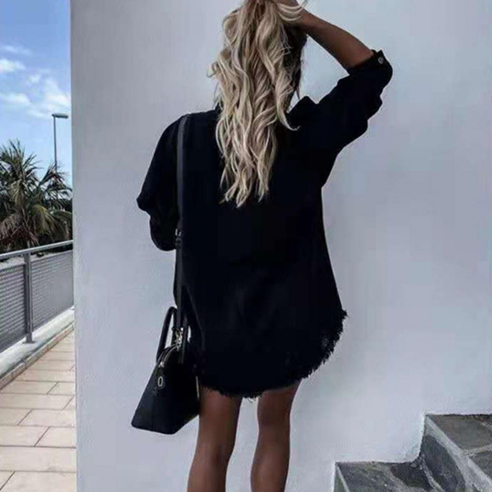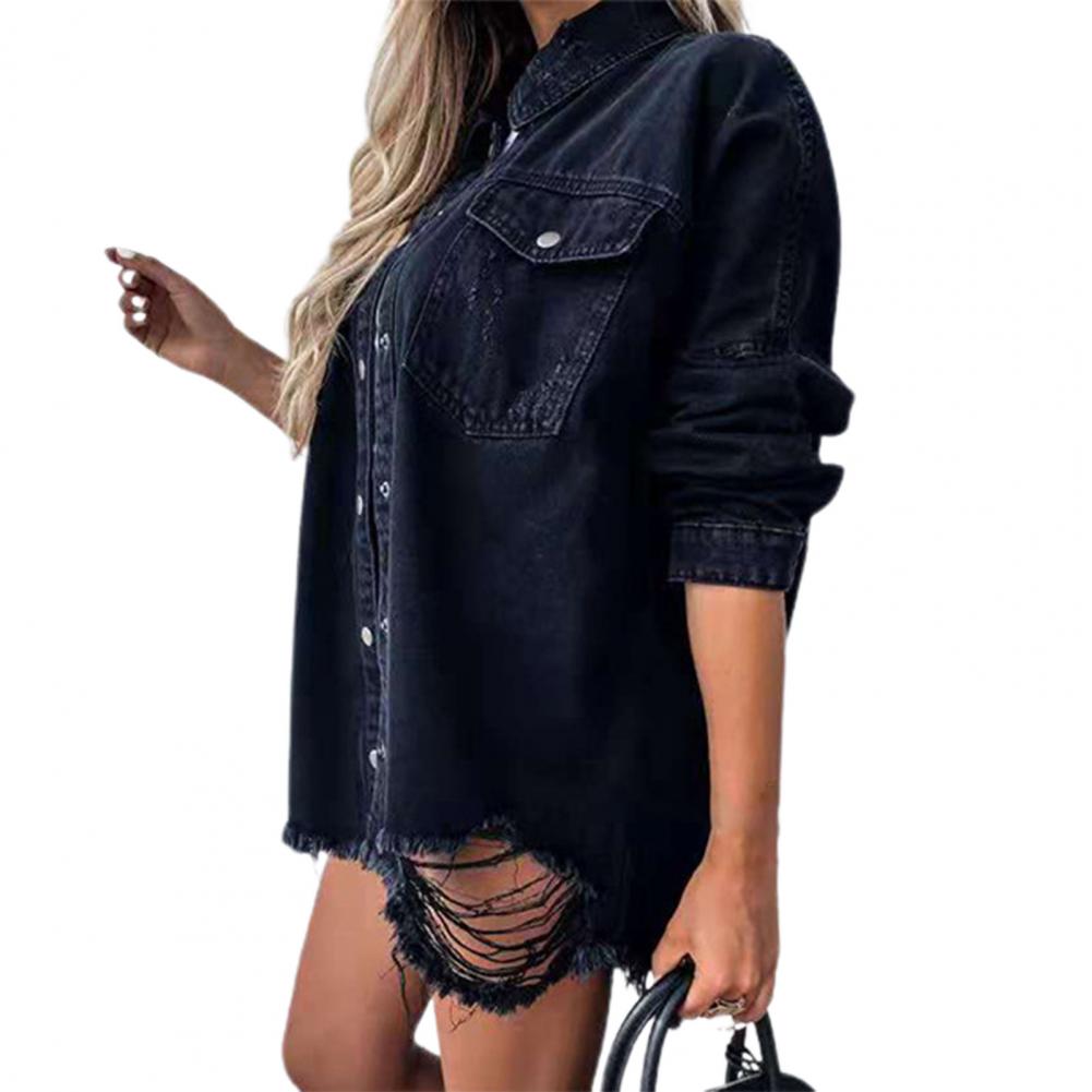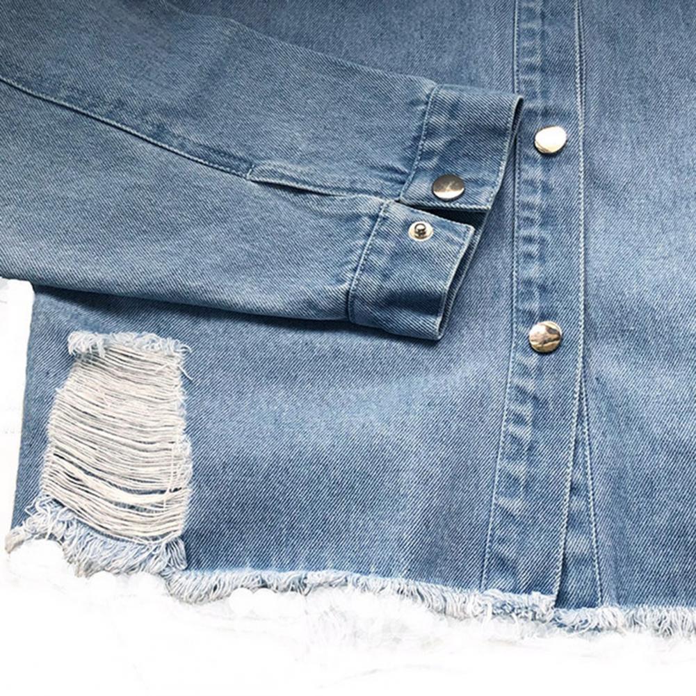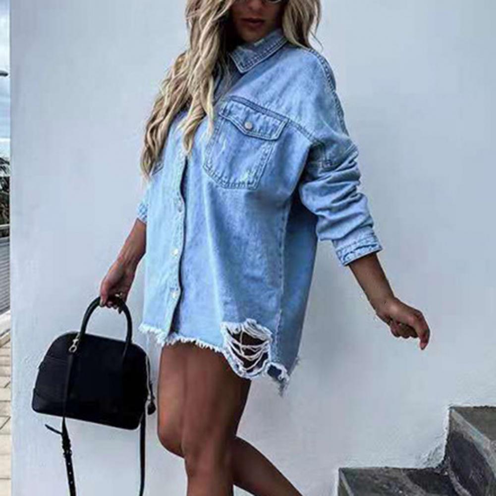 Женские куртки повседневные модные джинсовые синие пальто с длинным рукавом Свободные рваные драпированные пуговицы верхняя одежда весна осень одежда