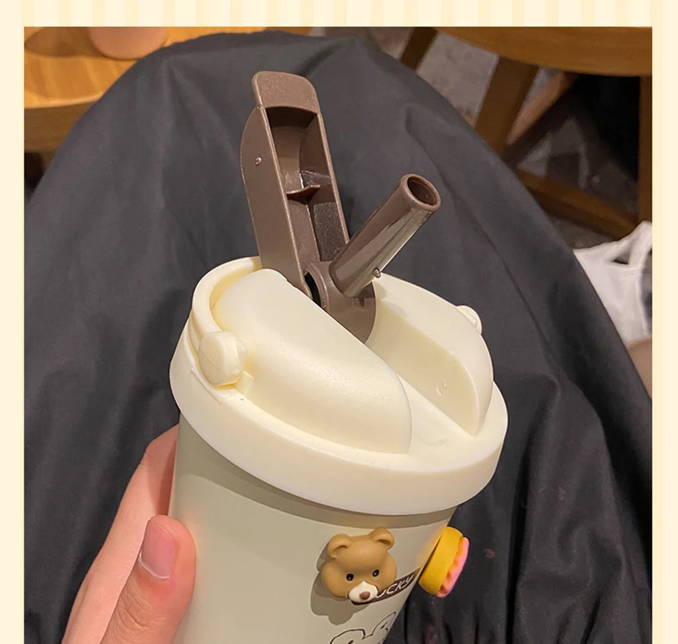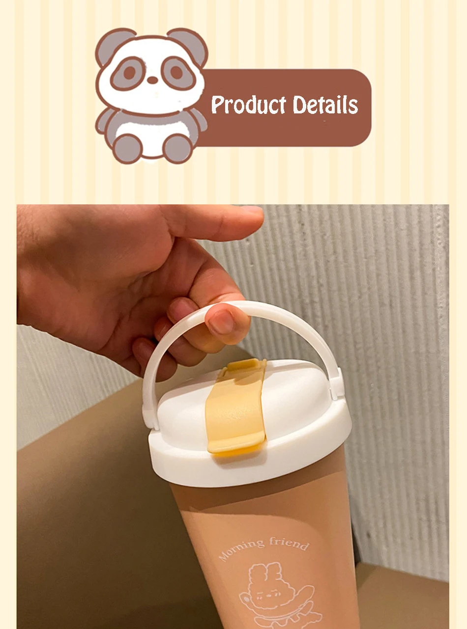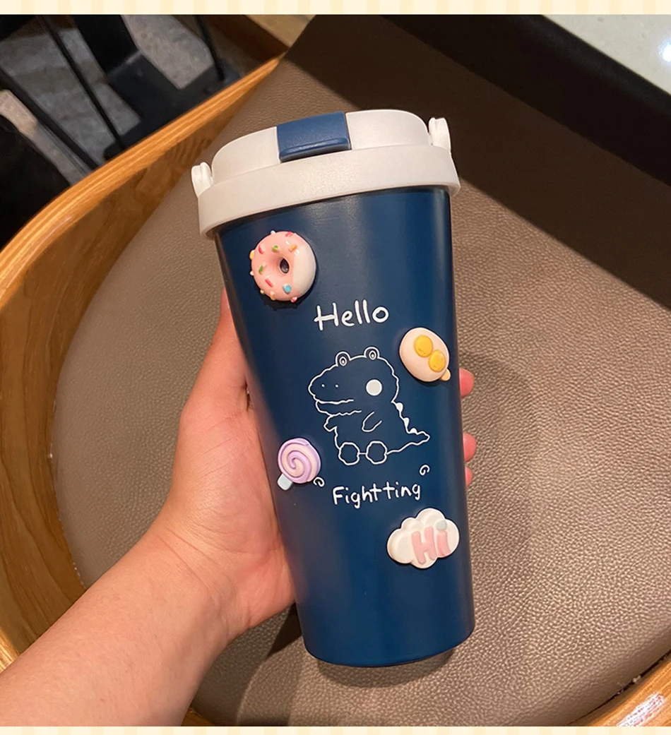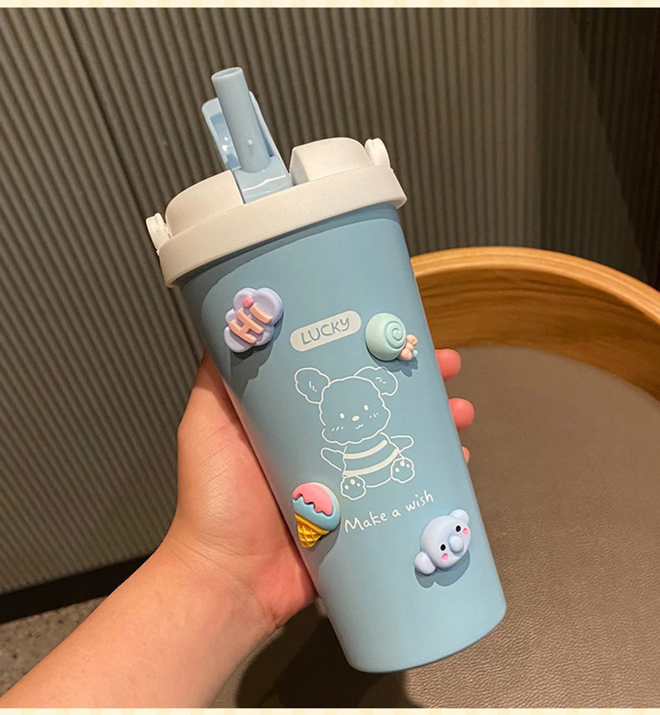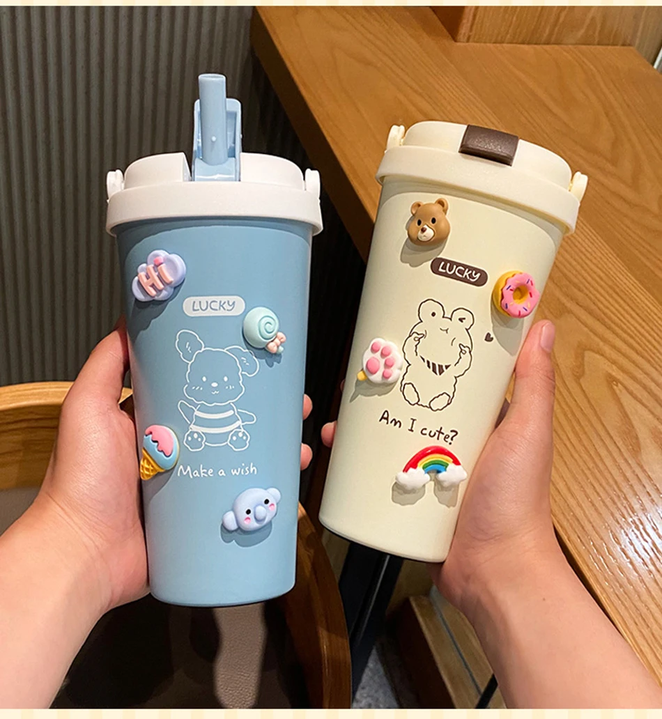 500 мл милый мультфильм соломенный термос бутылка кофе Термокружка Из Нержавеющей Стали изоляционная чашка портативная ручка дорожный чайный стакан
