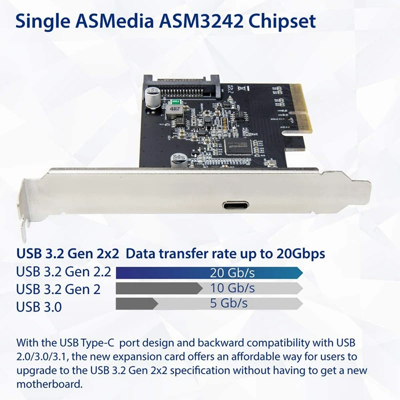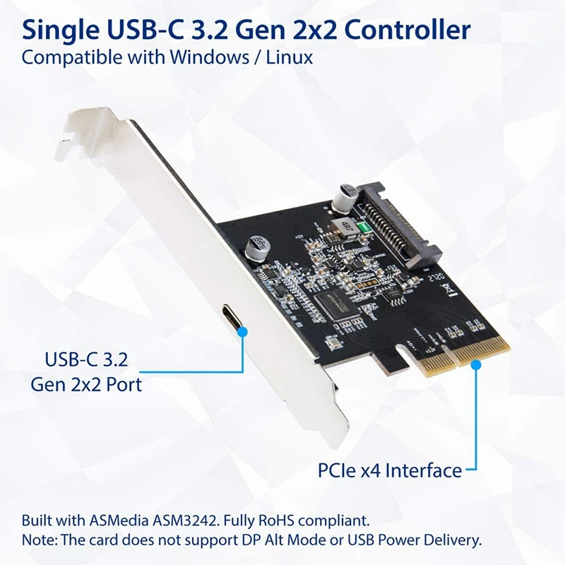IOCREST USB 3,2 PCI Express Expansion Card PCI-E 4X To USB3.2 Gen2 X2 Type-C 20 Гбит/с SATA Powered Asmedia ASM3242