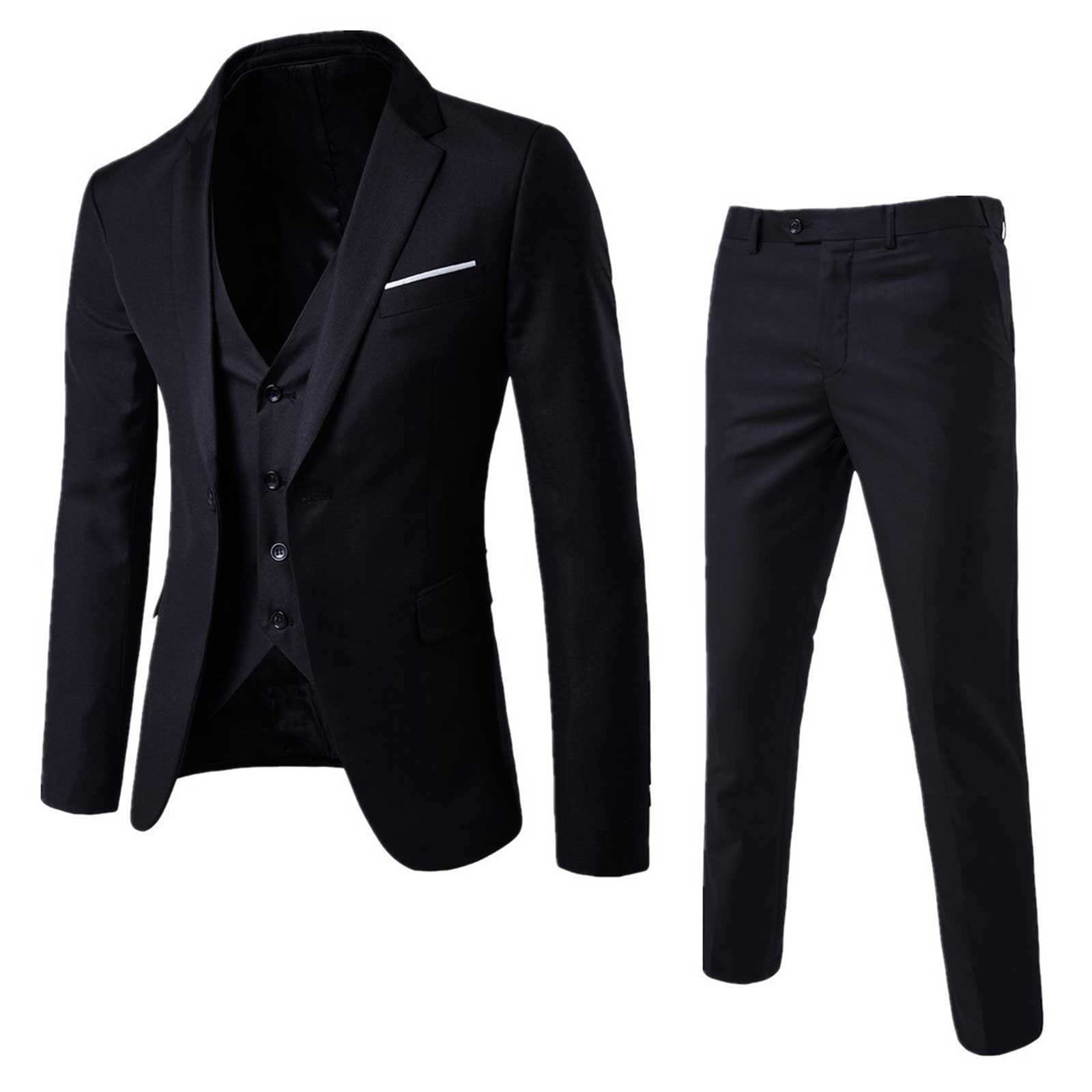 Мужская однотонная одежда для джентльмена, комплект из 3 предметов, блейзер с длинными рукавами и одной пуговицей, жилет на подкладке, длинные штаны, костюм для офиса и свадьбы.