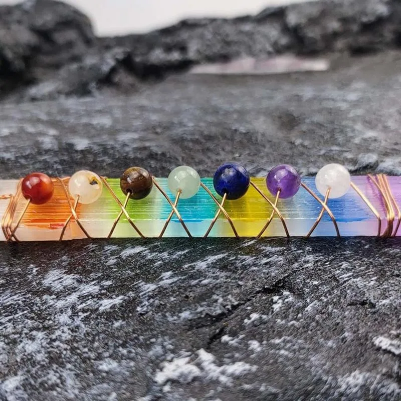 1 шт. неправильная аура селенит палочка Провод Завернутый 7 Чакра красочные квадратные бар Йога Медитация камни