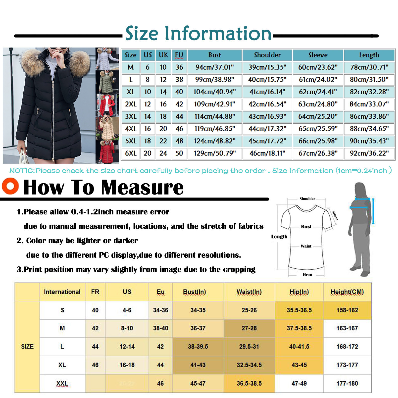 Что вы получаете: 1 шт. Женское пальтоРазмеры США Великобритания ЕС Бюст Плечо Рукав Длина М 6 10 36 94 см/37,01'' 39 см/15,35'' 60 см/23,62'' 78 см/30,71'' L 8 12 38 99 см/38,98'' 40 см/15,75'' 61 см/24,02'' 80 см/31,50'' XL 10 14 40 104 см/40,94'' 41 см/16,14'' 62 см/24,41'' 82 см/32,28'' 2XL 12 16 42 109 см/42,91'' 42 см/16,54'' 63 см/24,80'' 84 см/33,07'' 3XL 14 18 44 114 см/44,88'' 43 см/16,93'' 64 см/25,20'' 86 см/33,86'' 4XL 16 20 46 119 см/46,85'' 44 см/17,32'' 65 см/25,59'' 88 см/34,65'' 5XL 18 22 48 124 см/48,82'' 45 см/17,72'' 66 см/25,98'' 90 см/35,43'' 6XL 20 24 50 129 см/50,79'' 46 см/18,11'' 67 см/26,38'' 92 см/36,22''