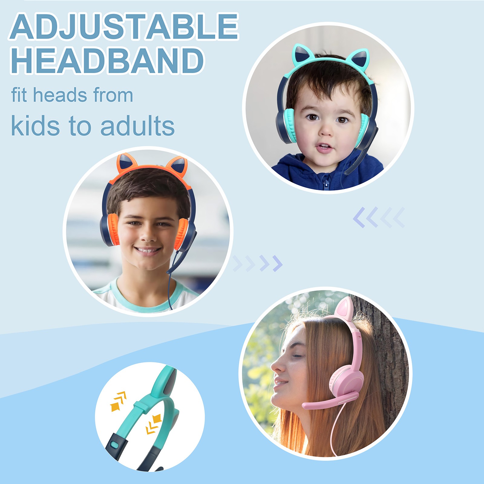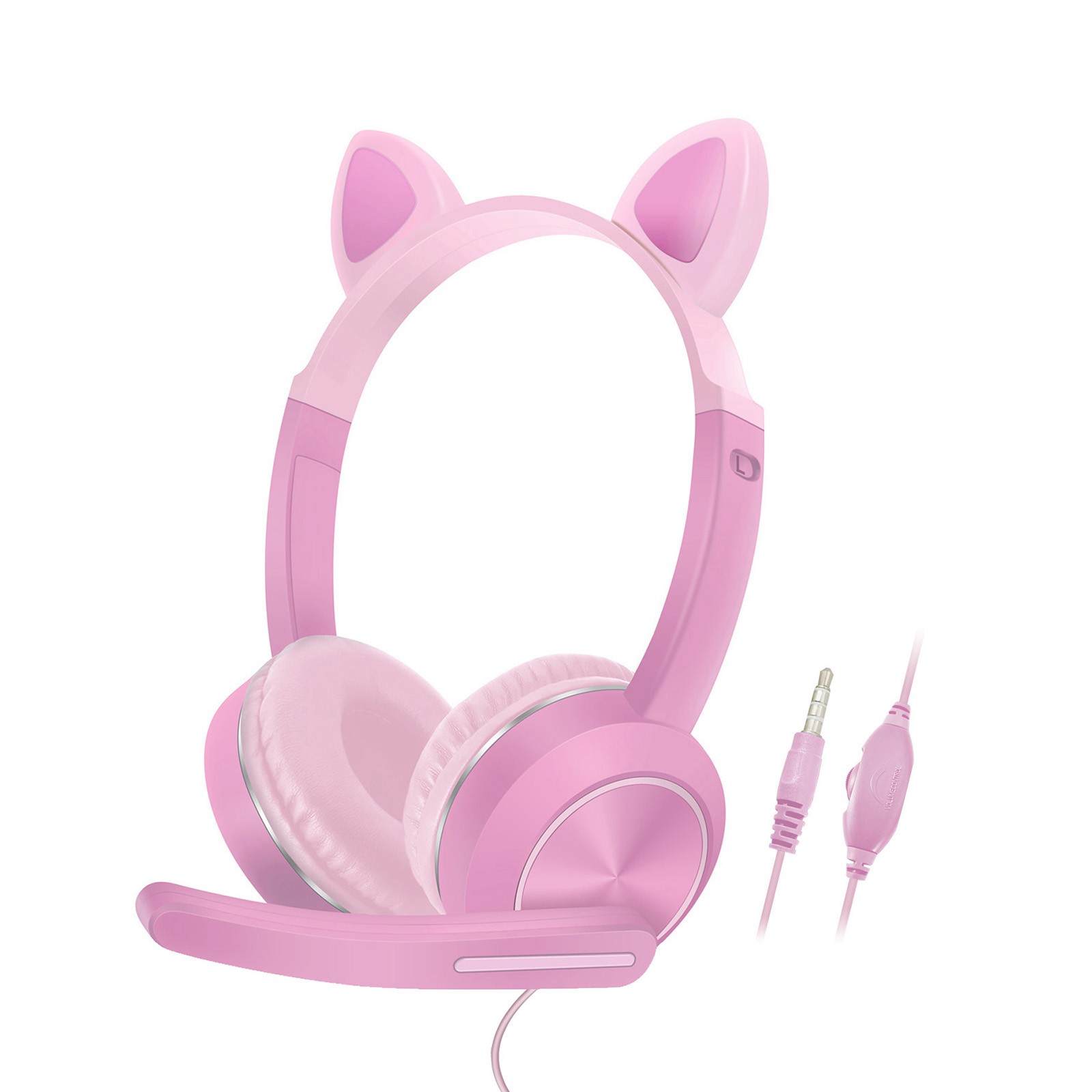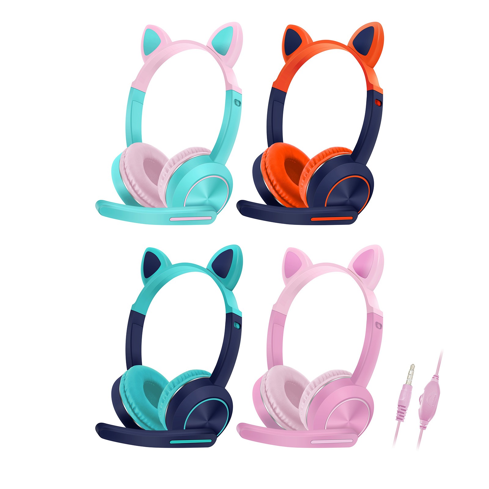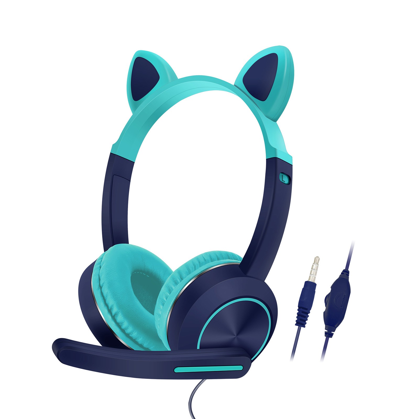 С милыми кошачьими ушками, для девочек гарнитура проводная игровая гарнитура с микрофоном 3,5 мм AUX с микрофоном, лучший подарок для детей и взрослых