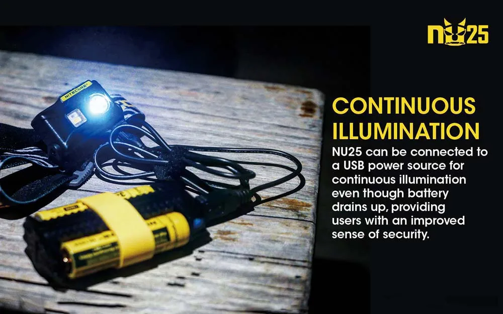 NU25 находится на блоке, как последний светодиодный налобный фонарь с высокой мощностью. Этот высокий выход, ручной инструмент для освещения может производить впечатляющие 360 люменов, используя мощность CREE XP-G2 S3 светодиодный. Встроенный литий-ионный аккумулятор поддерживает работу NU25 в течение длительного периода времени и может легко заряжаться с помощью любого совместимого с micro USB источника питания. В верхней части светильник имеет светодиодный индикатор питания, который позволяет вам знать, когда пришло время для зарядки, а также режим блокировки поможет сохранить Светильник выключается во время хранения. Отлично подходит для бега, кемпинга или путешествий, NU25-это перезаряжаемая фара, которую вы искали!