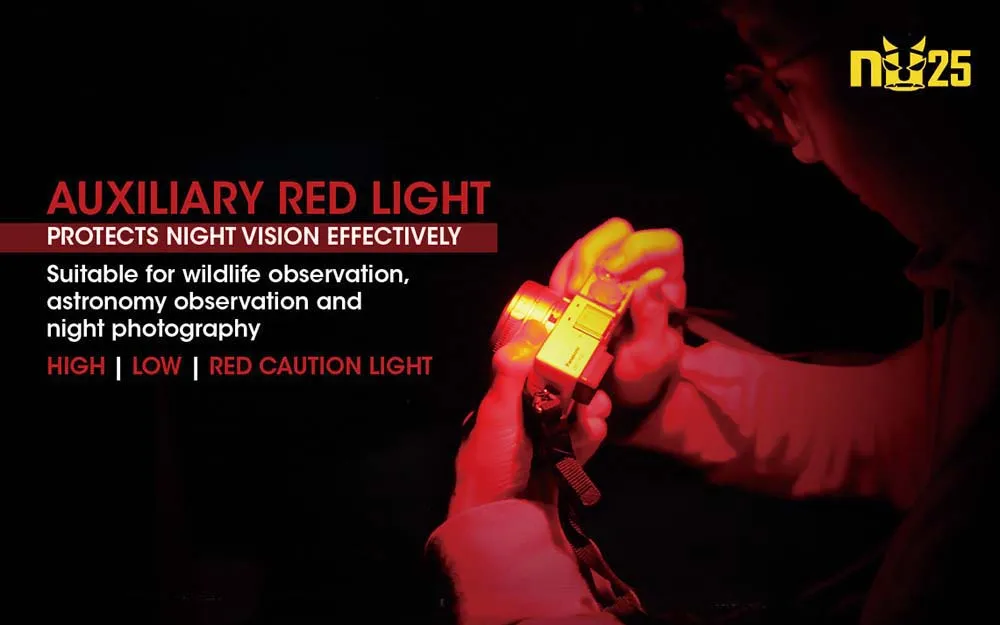 NU25 поставляется с большим пакетом трюков, и может помочь вам пройти через любую ситуацию! Высокий CRI вспомогательный белый светильник обеспечивает высокий индекс цветопередачи светильник, отлично подходит для вечерних фон для фотосъемки или в том случае, если вы просто хотите более естественный вид светильник. Интегрированный красный светодиодный индикатор отлично подходит для плавного, сдержанного ночного видения и аварийной сигнализации. Говоря о чрезвычайных ситуациях, основной светодиодный индикатор также может выполнять функции SOS и маяка, которые могут значительно отличаться при потере. Основной корпус светильник может быть угол возможность регулировки в пределах 60 градусов, дают высокую степень осуществления контроля над в тех случаях, когда луча является единственным qr code. Nitecore NU25-это перезаряжаемый налобный фонарь, который может позаботиться о всех ваших потребностях в освещении!