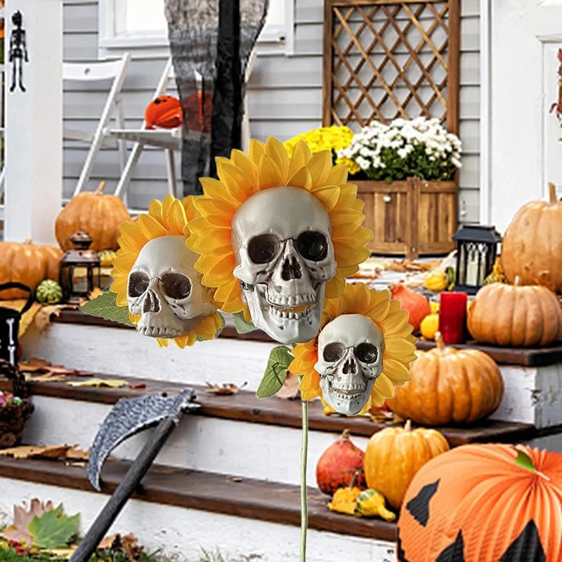 Жуткий череп Подсолнух цветы череп фестиваль Искусство ремесло украшение сада Моделирование цветок украшения Хэллоуин