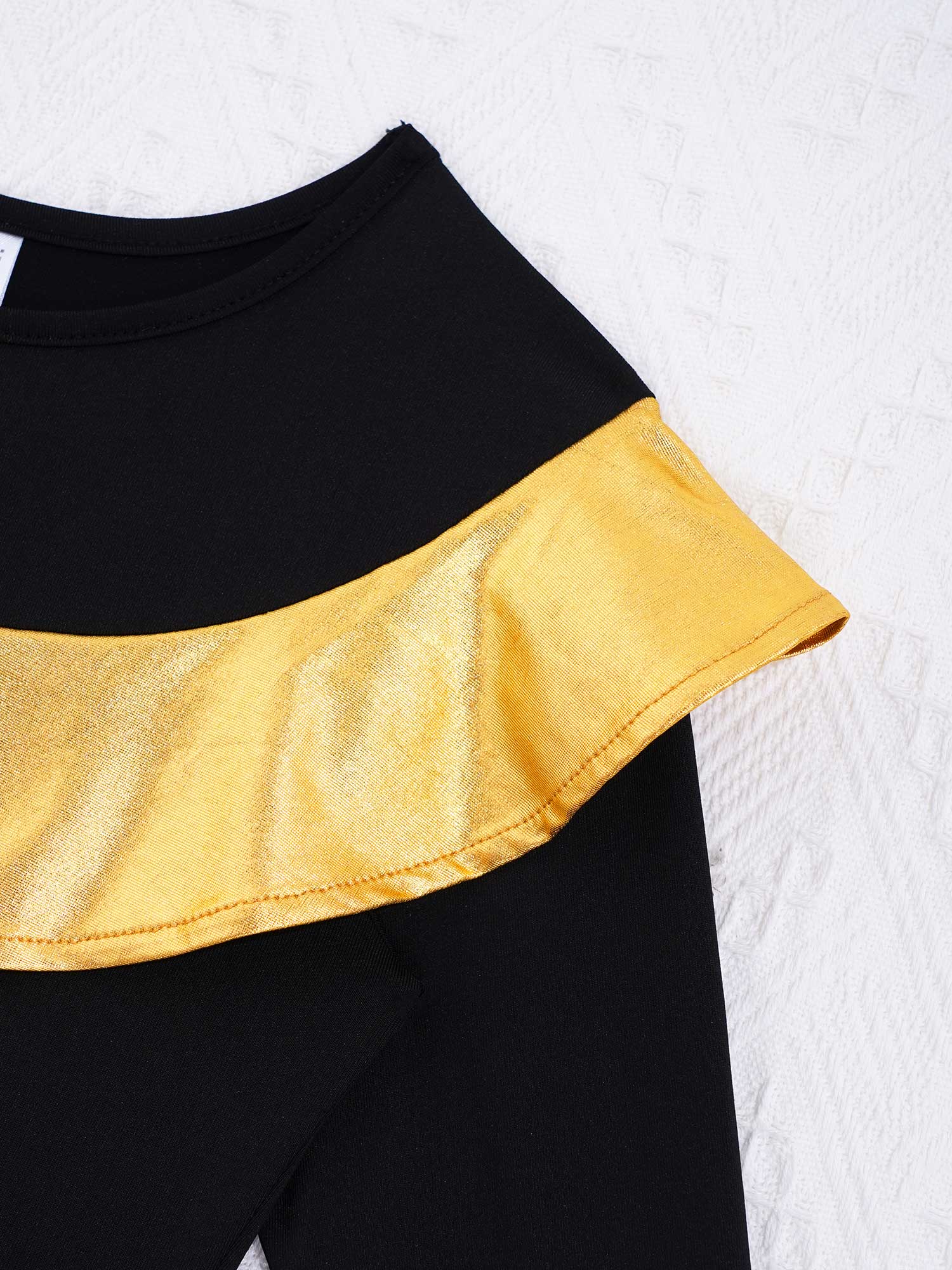 Платье с длинным рукавом и круглым вырезом, воротником с рюшами, модным пэчворком из бронзовой ткани.