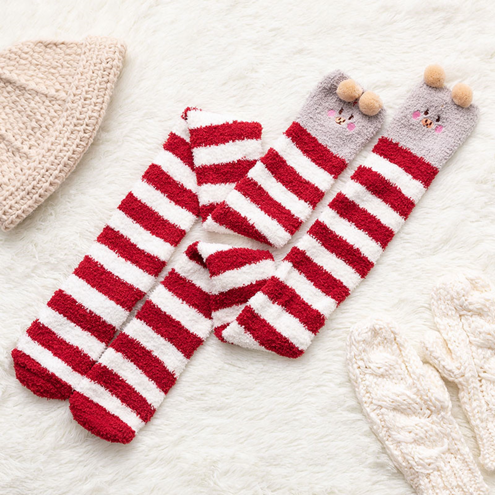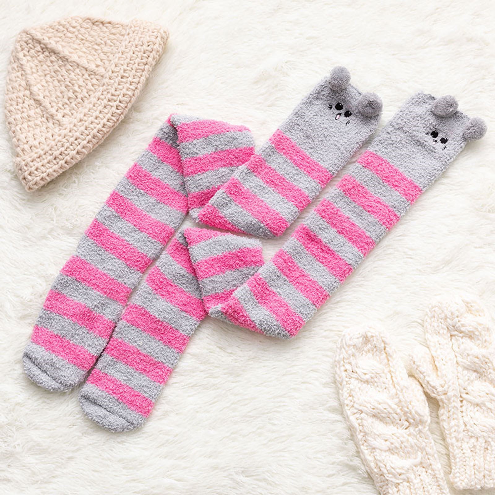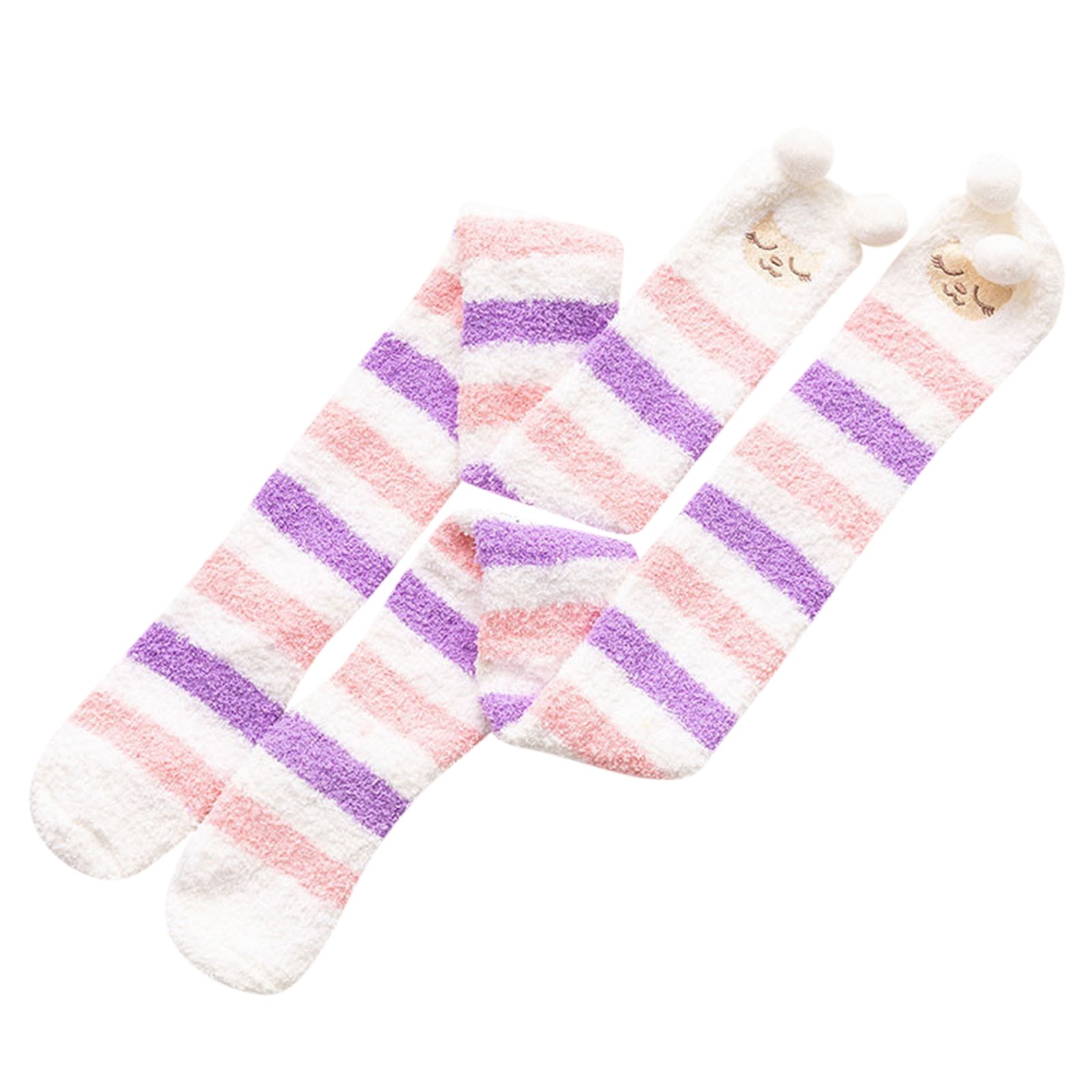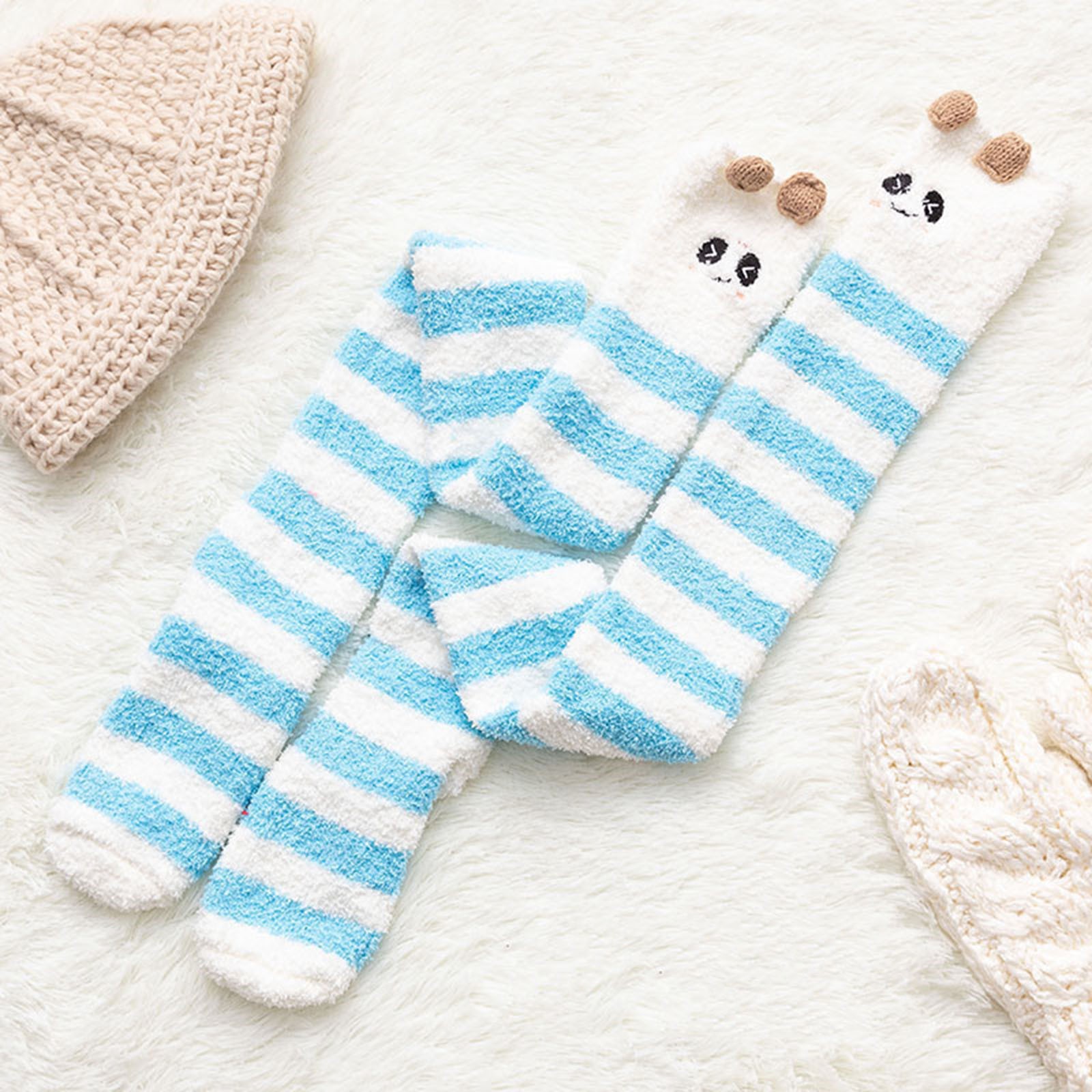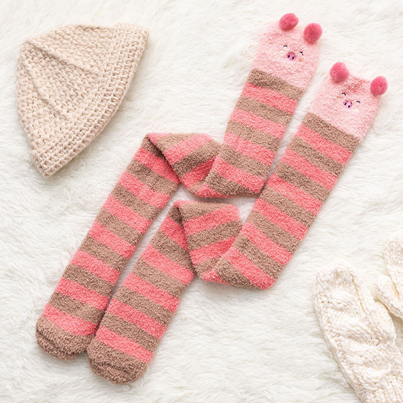 Womwn/носки из кораллового флиса выше колена; Плотные теплые носки в полоску для сна