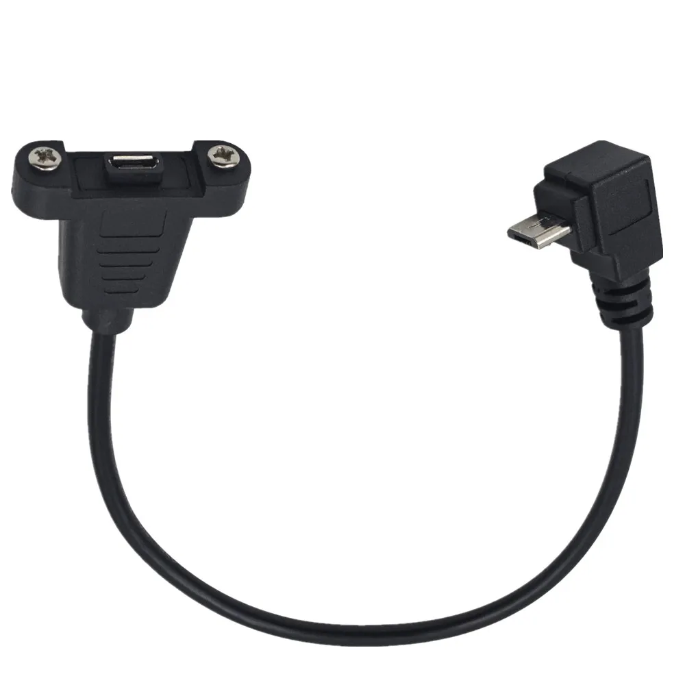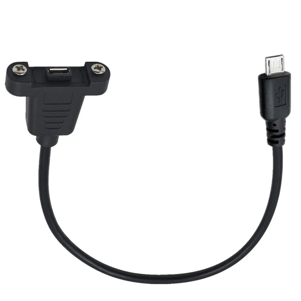 Удлинительный кабель Micro USB B с креплением на панель с винтами, обеспечивает полностью функциональный удлинитель для крепления на панель, работает для зарядки, передачи данных. Расстояние винтов составляет 28 мм. 1 фут, черный