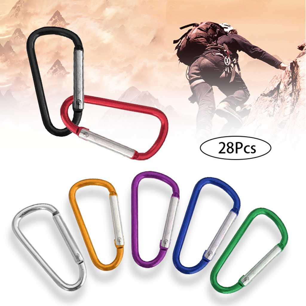 28Pcs Assorted Colors D Shape Spring-loaded Gate Aluminum Carabiner