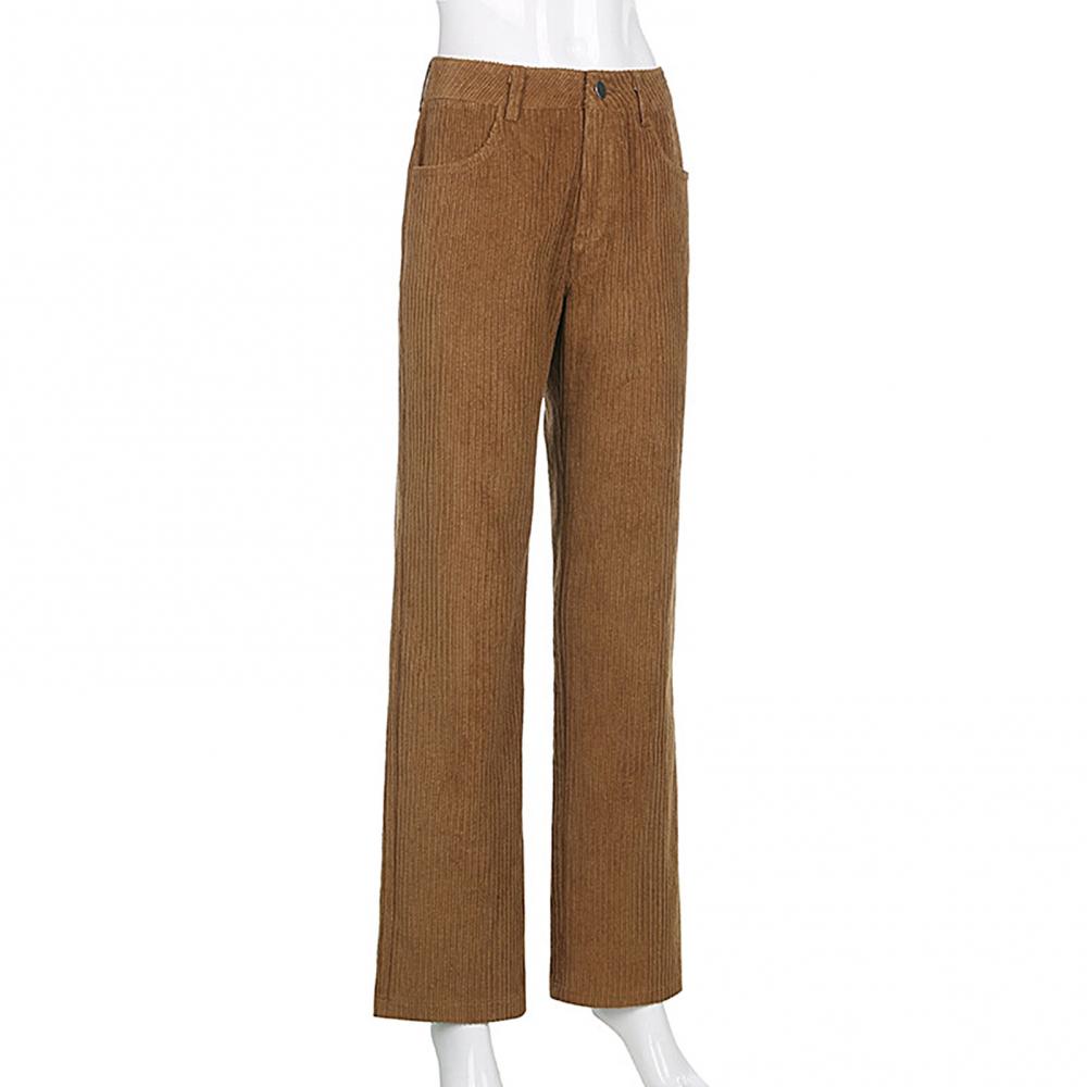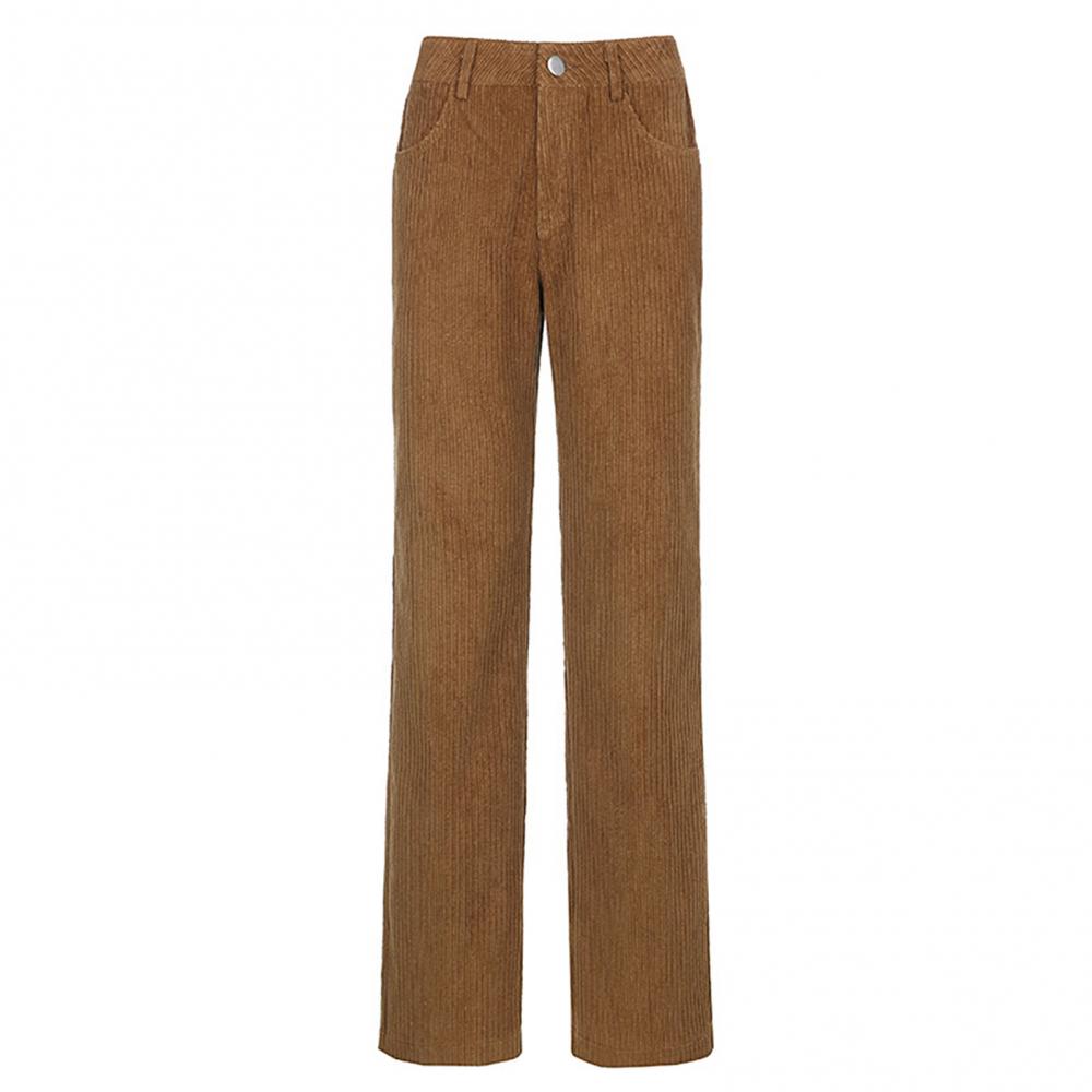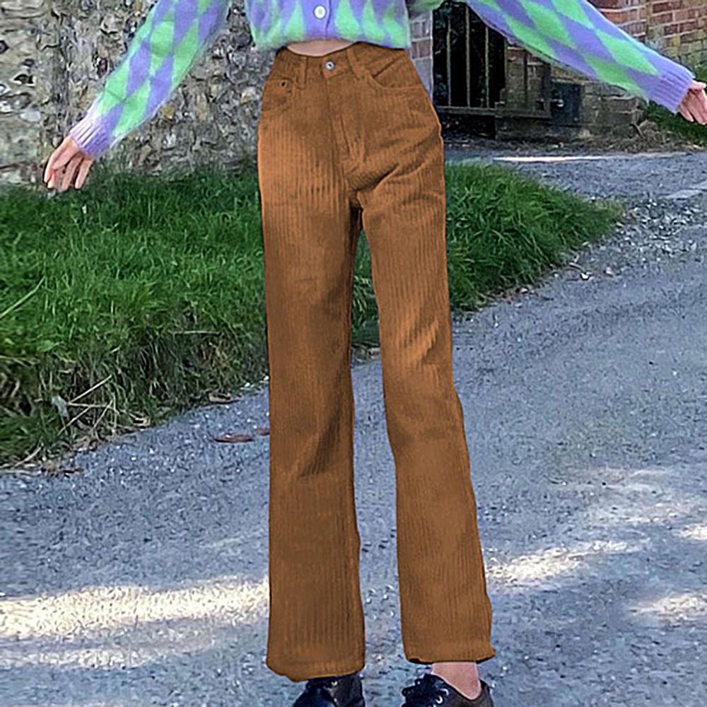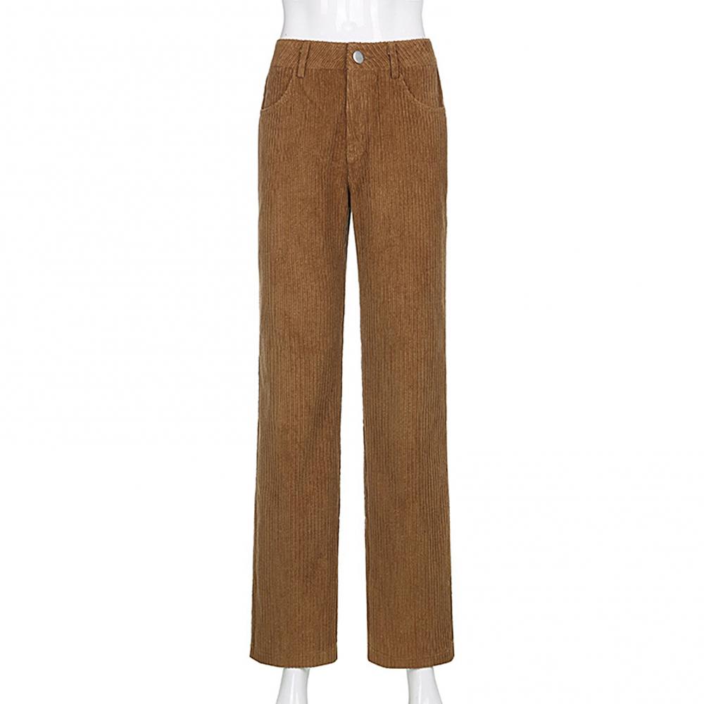 Женские вельветовые брюки на молнии с высокой талией, однотонные свободные прямые брюки