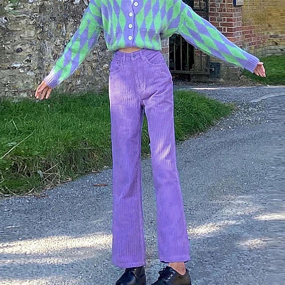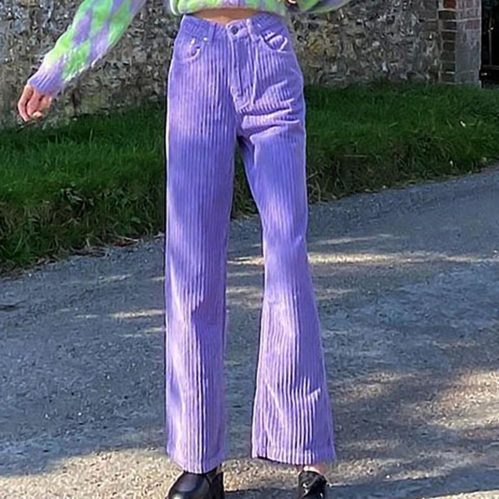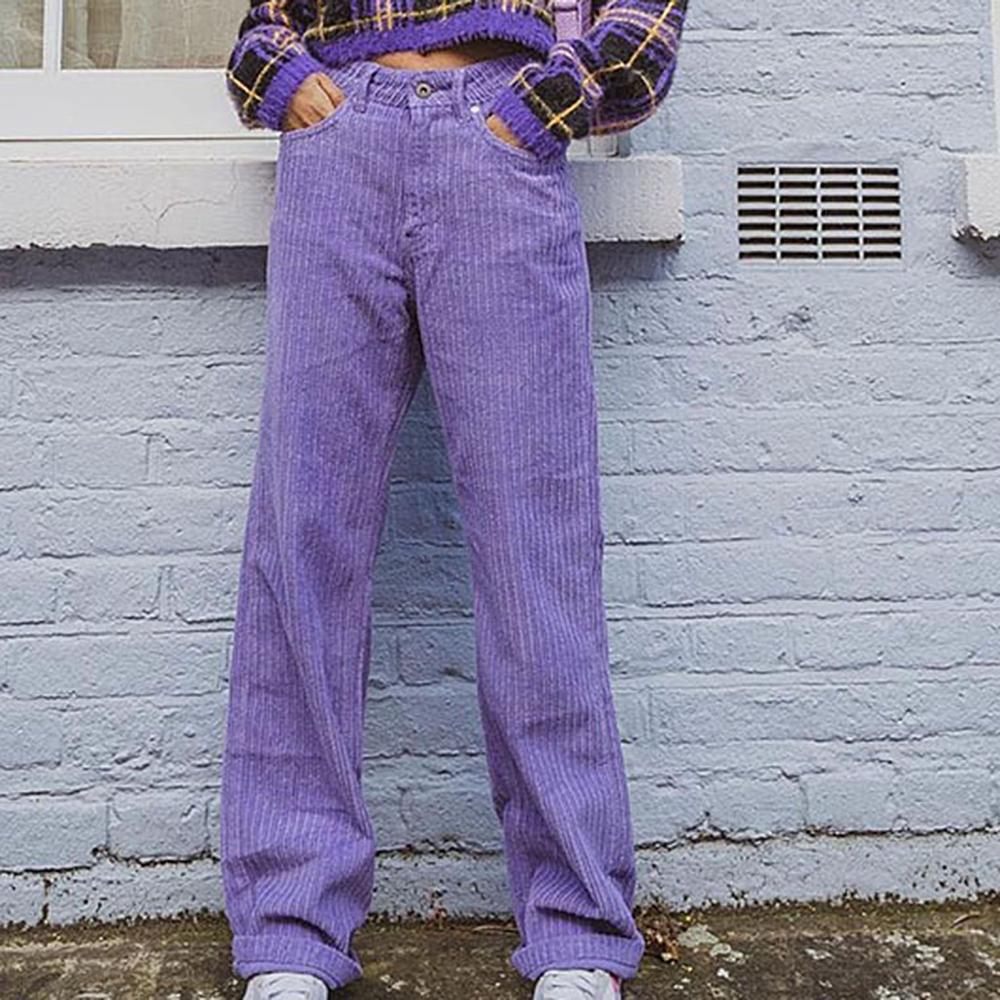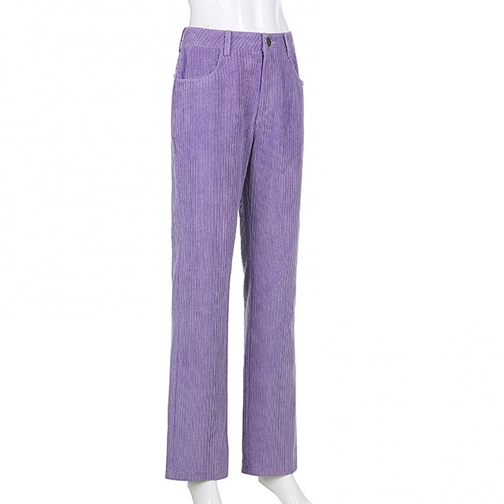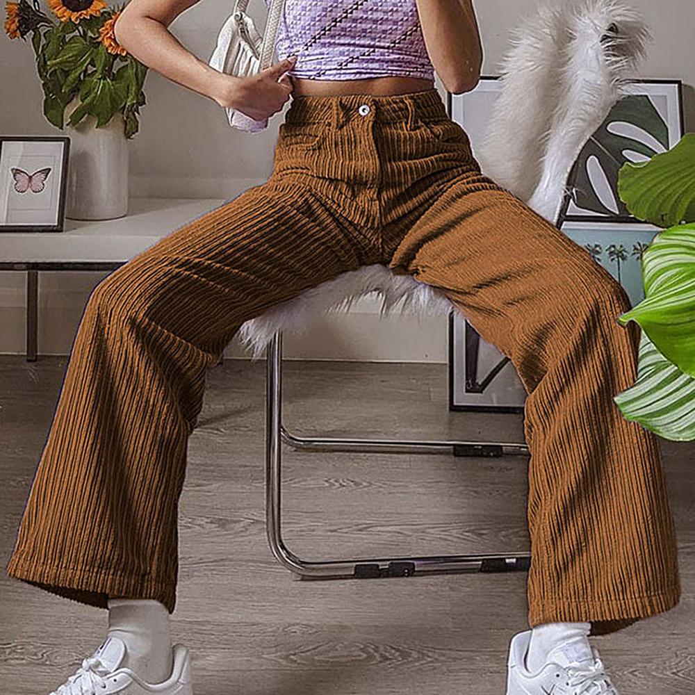 Женские вельветовые брюки на молнии с высокой талией, однотонные свободные прямые брюки