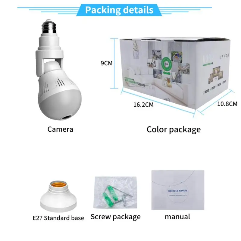 *360°panoramic camera: 1080P LED bulb wireless 360 degree panoramic camera without blind area,which can give it well coverage of the entire room to monitor each and every corner of your home and office,a good monitor to protect your important things,baby, pet when you are away from home.