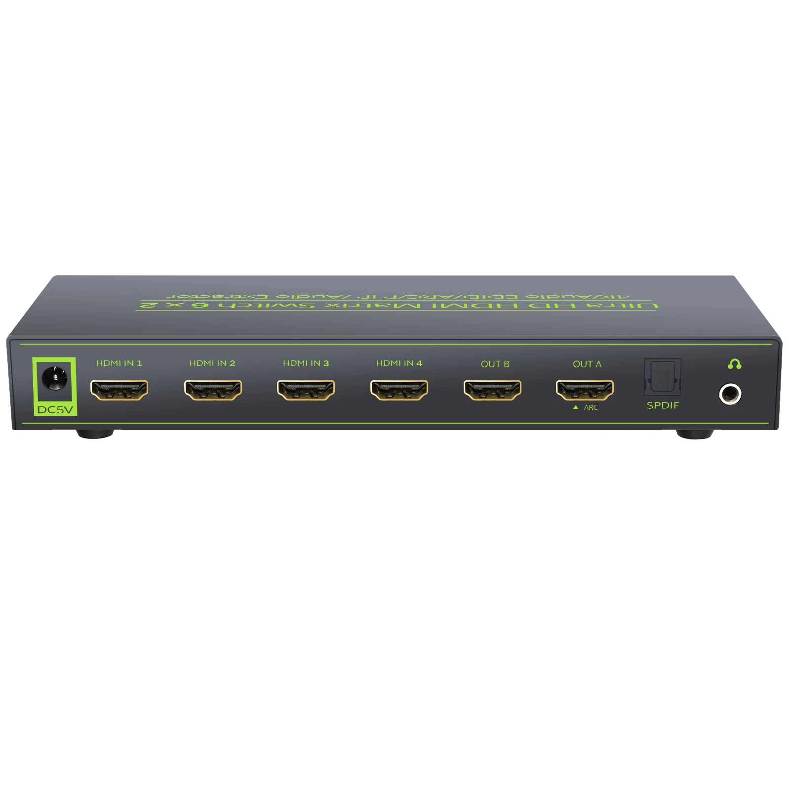 Матричный коммутатор 4k 6X2 HDMI, Матричный Коммутатор HDMI 6 В 2, сплиттер с поддержкой ARC,4K @ 30 Гц, PIP, аудио экстрактор, с ИК-пультом дистанционного управления и адаптером питания