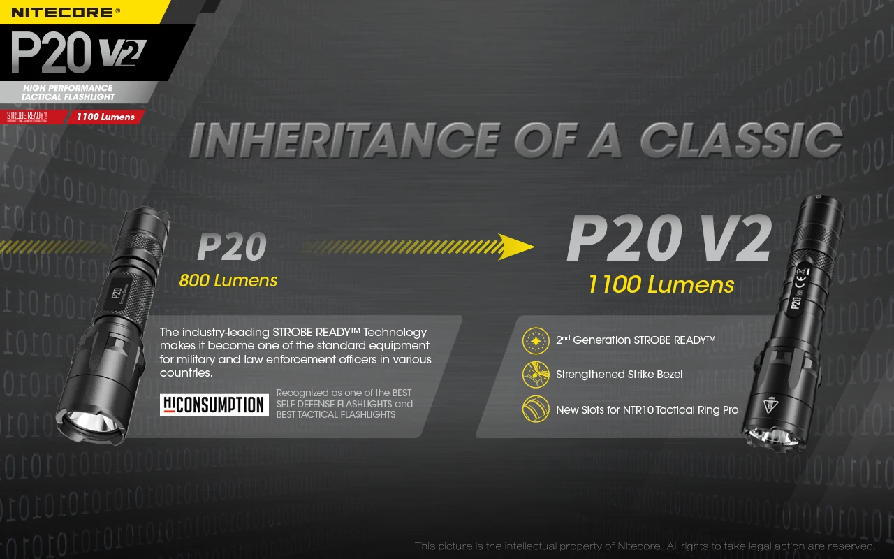 Nitecore's new P20 V2-Компактный тактический фонарь для правоохранительных органов и повседневного ношения. На 1100 люменов, этот светильник 38 & процентов; Ярче, чем его предыдущий и предлагает 222 м бросок для наружного поиска приложений.