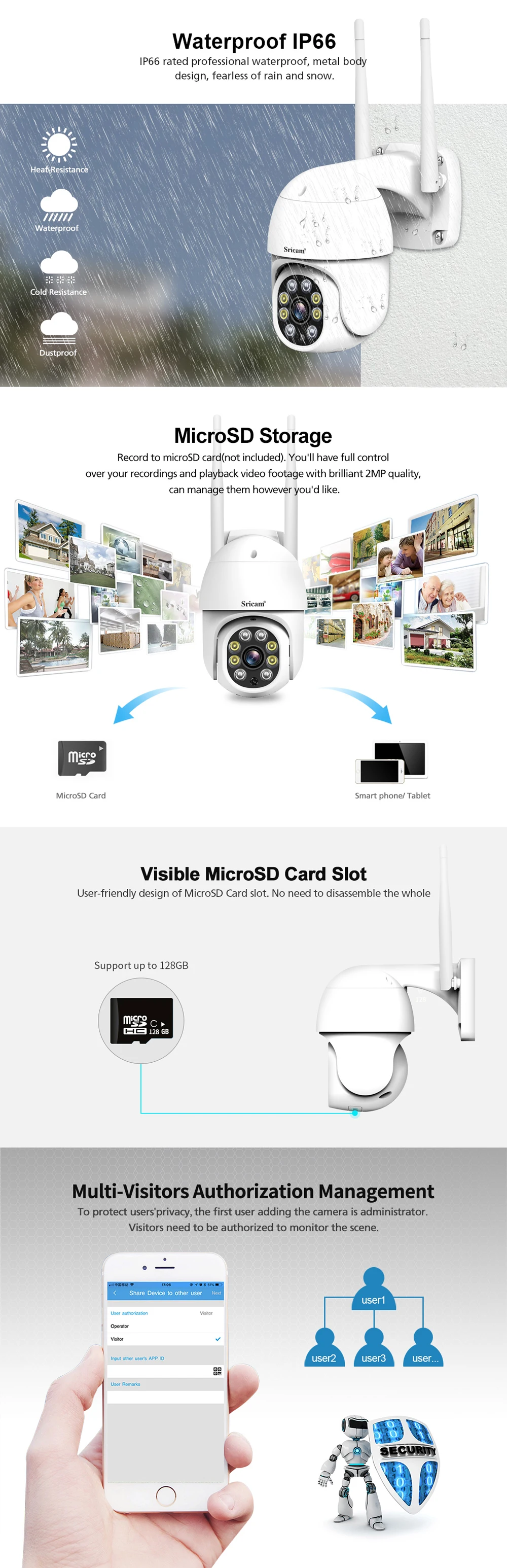 Sricam SP028 1080P Starlight WIFI IP камера IP66 Водонепроницаемая наружная CCTV PTZ камера AI Обнаружение человеческого тела цвет ночное видение