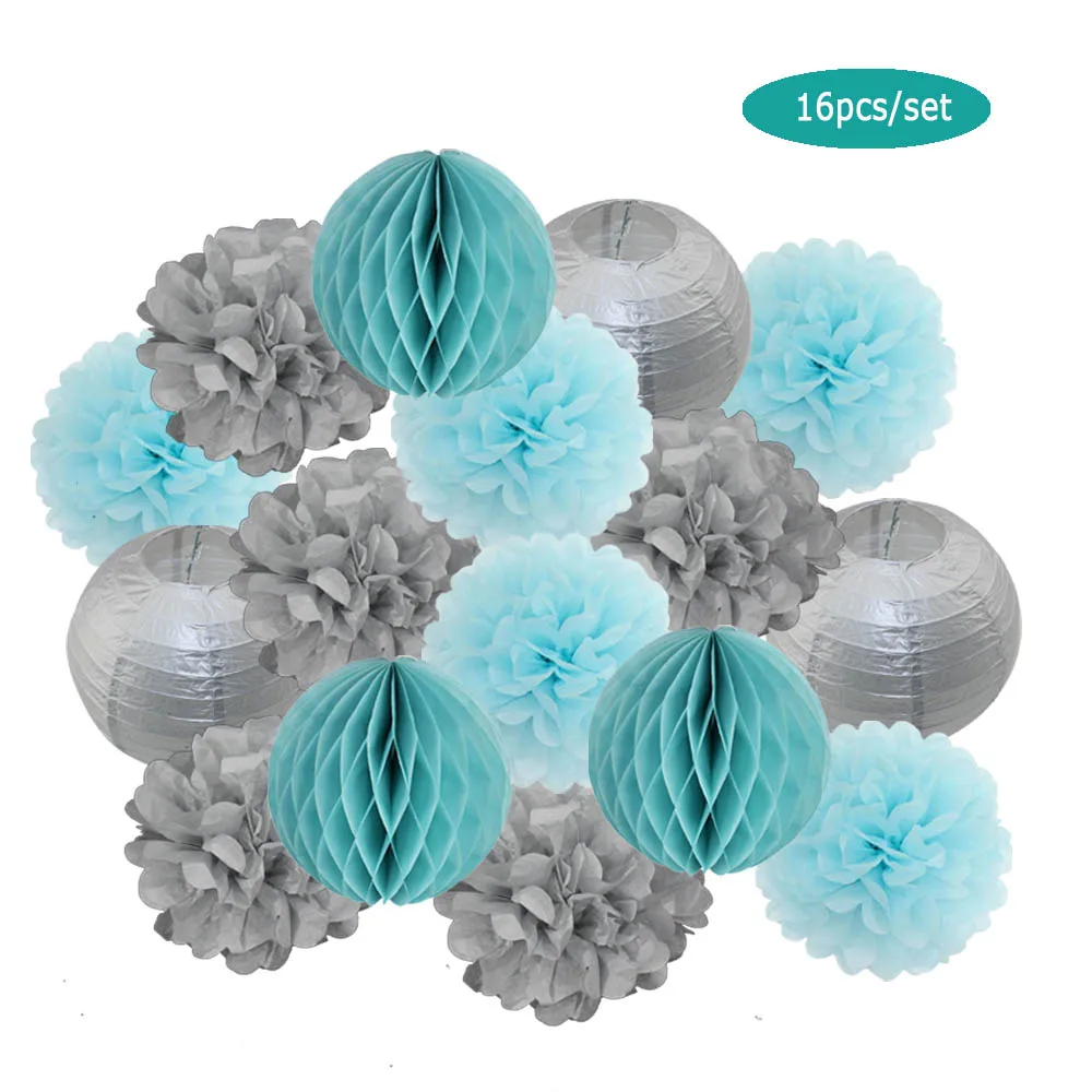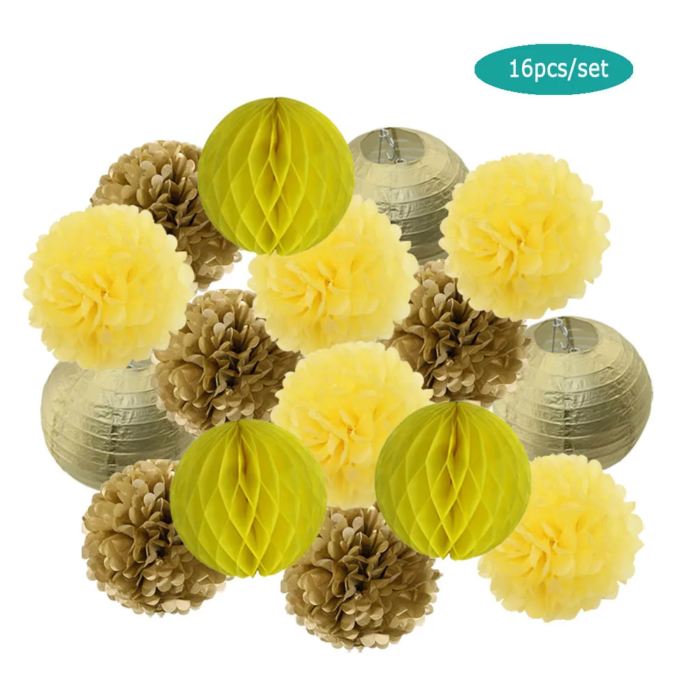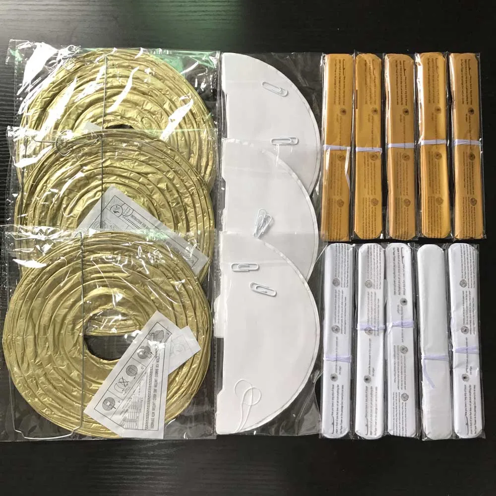 Упаковка: 1 комплект = 3 фонаря + 3 сотовых шара + 10 бумажных помпонов.