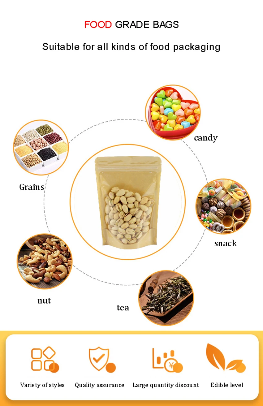 100 шт, Крафт, бумага, подставка, мешок, полупрозрачный, молния, зиплок, мешок, чай, сухой, товары фрукты, повторно герметичный, мешок, праздник, еда, упаковка, мешок, шоколад, зерна, стенд, мясо, композит, конфеты, фрукты, товары, одежда, Ziplock сумка, хранение на кухне, мешки для хранения, многоразовые сумки, кухонные хранения и организации, мешок фасоли