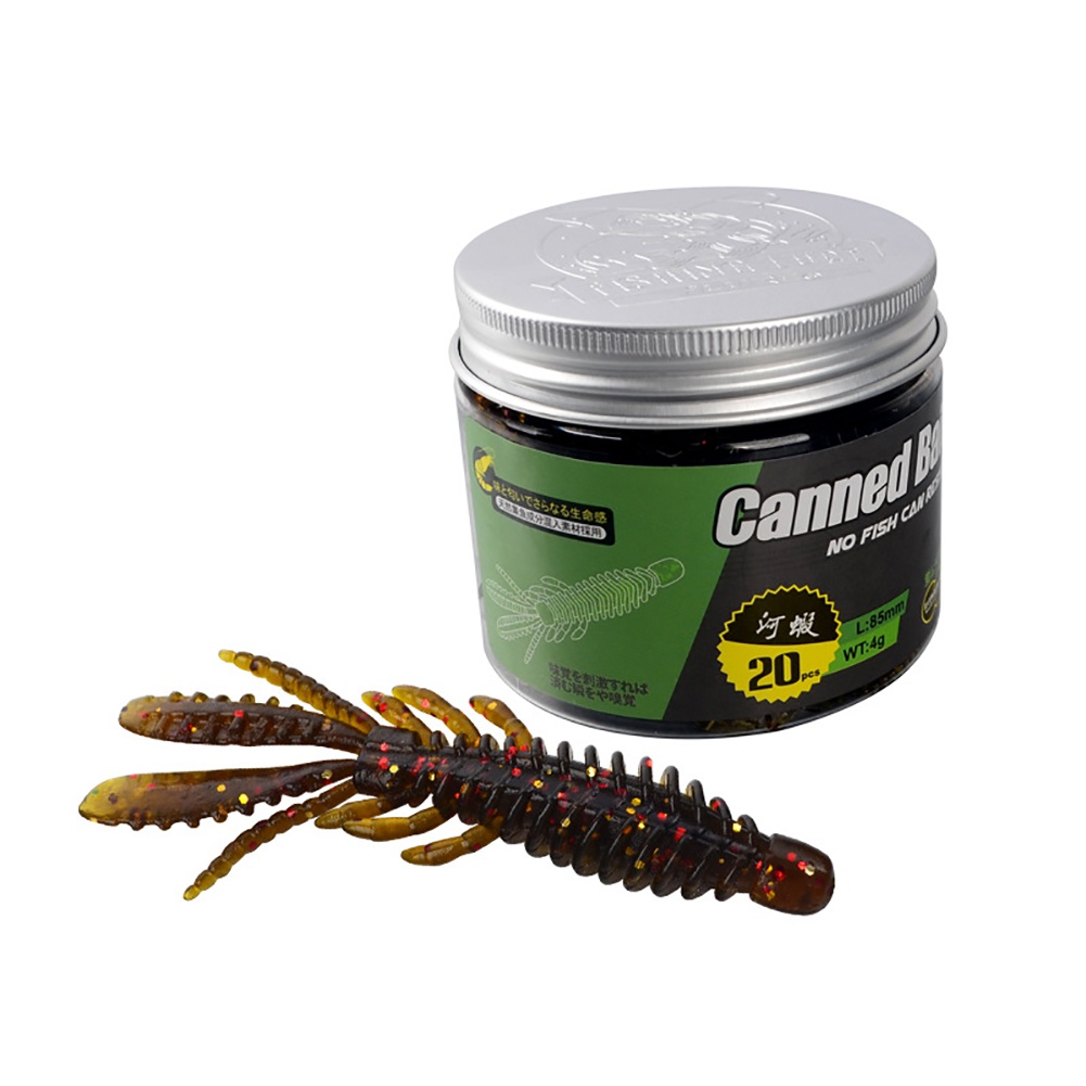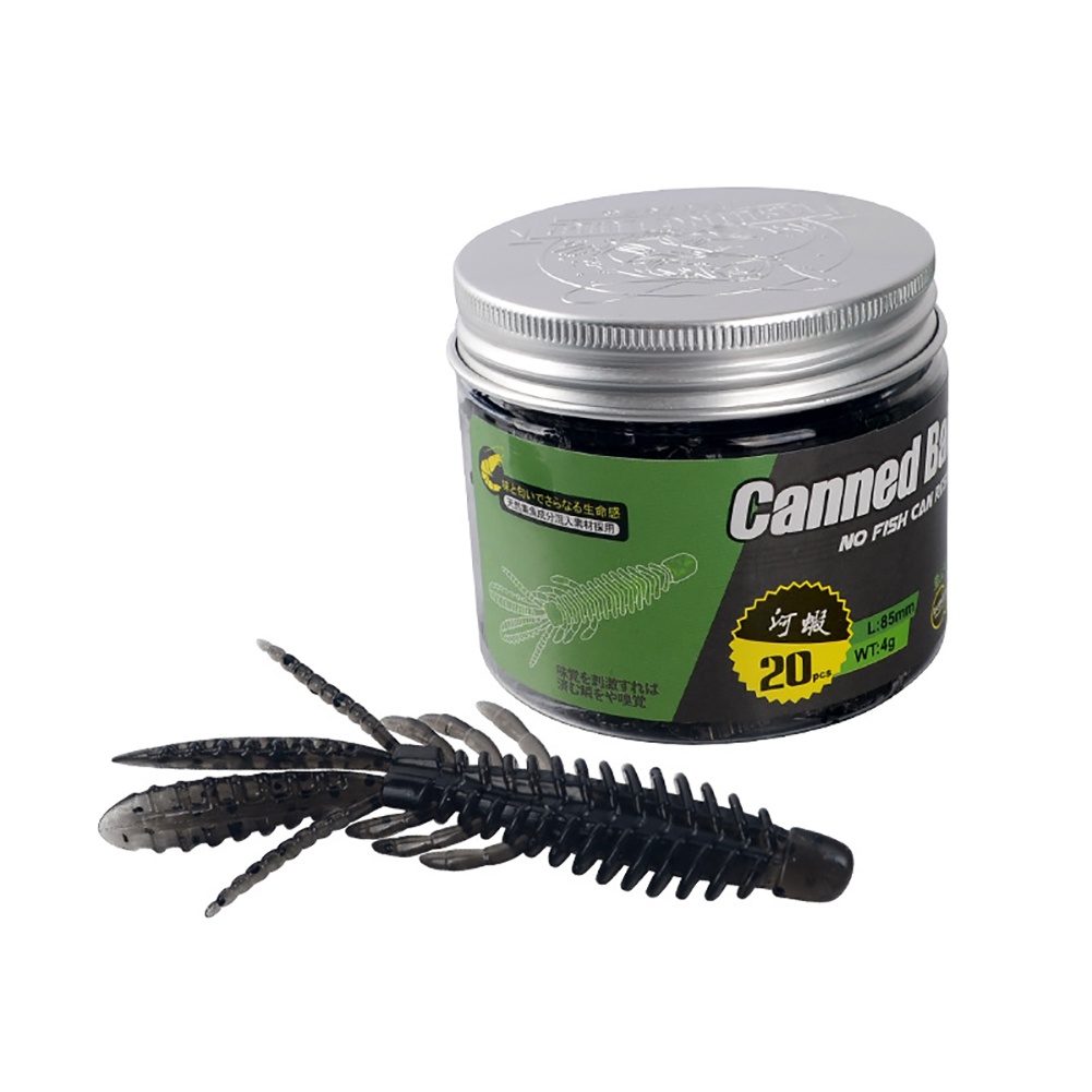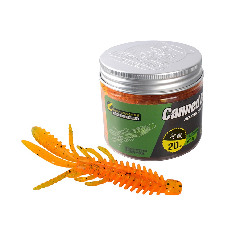 1. River shrimp type soft bait, material: PVC material, length: 85mm, weight 4g/strip, 20pcs/can, weight 0.1kg.
