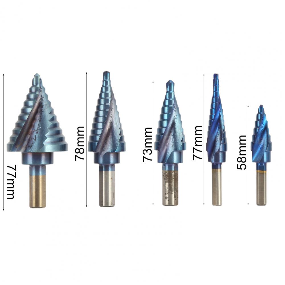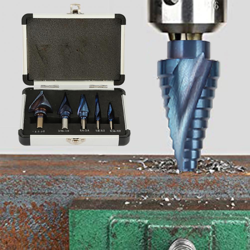 5 ступенчатых сверл (1/4-(1-3/8)", 3/16-7/8", 1/4-3/4 ", 1/8-1/2", 3/16-1/2 ")