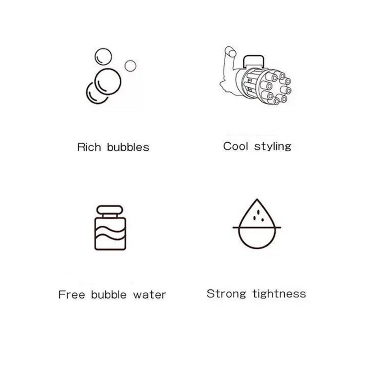Уникальный дизайн: Gatling Стильная пузырчатая машина, 8 отверстий в пузырях, больше пузырьков, которые выглядят очень крутыми Красочно и весело играть. Форма классная, и стиль отличается, поэтому Что вы станете уникальным пузырьковым проигрывателем, привлекая окружающее зрение. 【 Безопасный для детей ABS Материал 】 Пузырьковые пистолеты изготовлены изNon-to-xicМатериал ABS, безопасен для детей Без протечек и пятен, что очень безопасно для детей и домашних животных, Дети безопасны, чтобы носить с собой пузырчатые пистолеты и наслаждаться их Погоня за пузырьками.Способ установки: