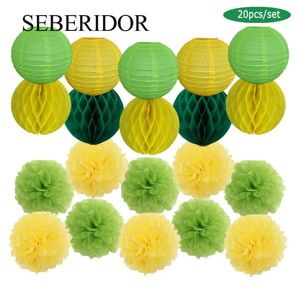 Упаковка: 1 комплект = 5 фонарей + 5 сотовых шаров + 10 бумажных помпонов.