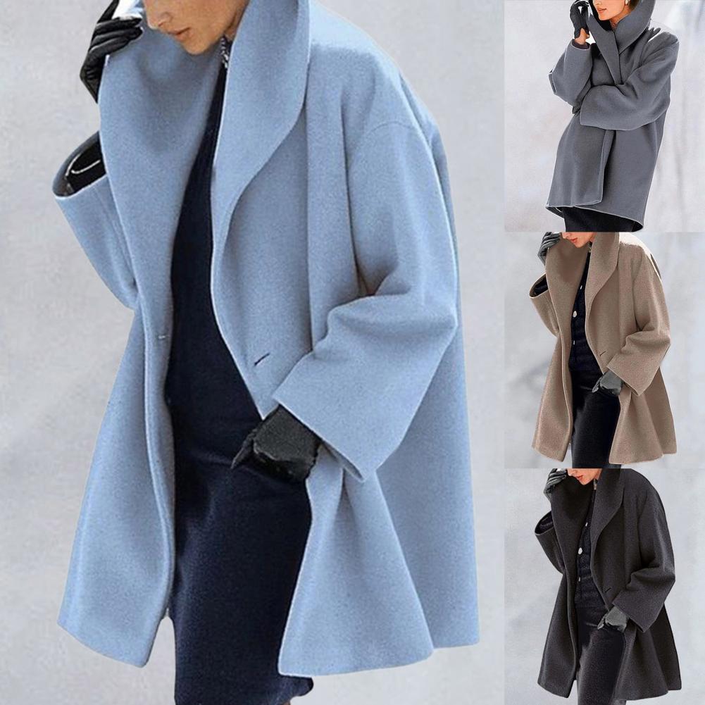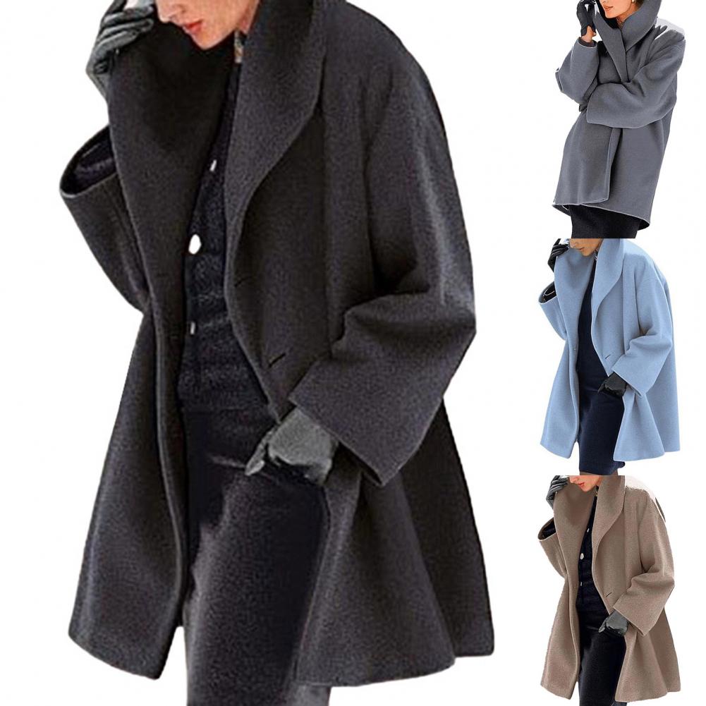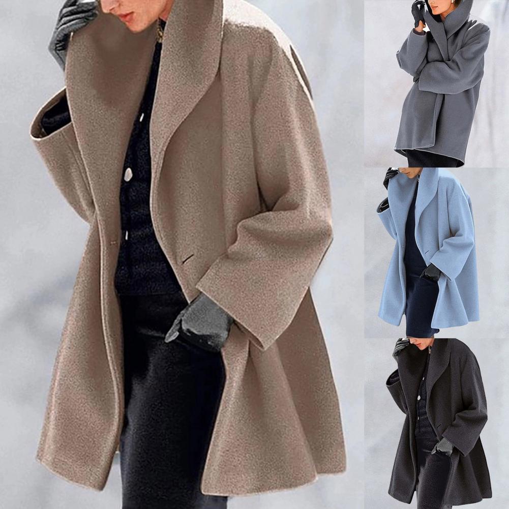 Женский Тренч, кардиган, отложной воротник, шерстяной однотонный, на одной пуговице, Женская куртка для повседневной носки
