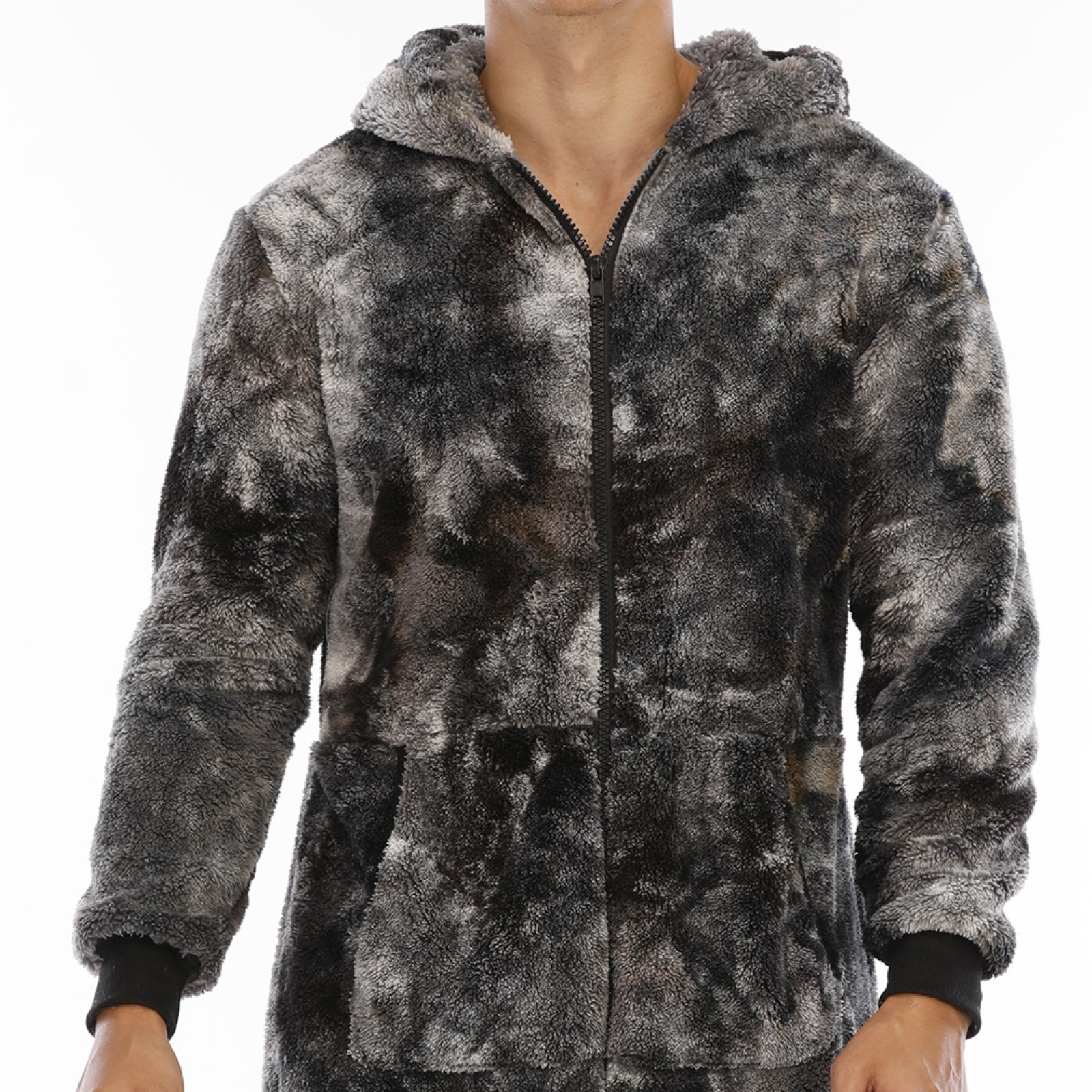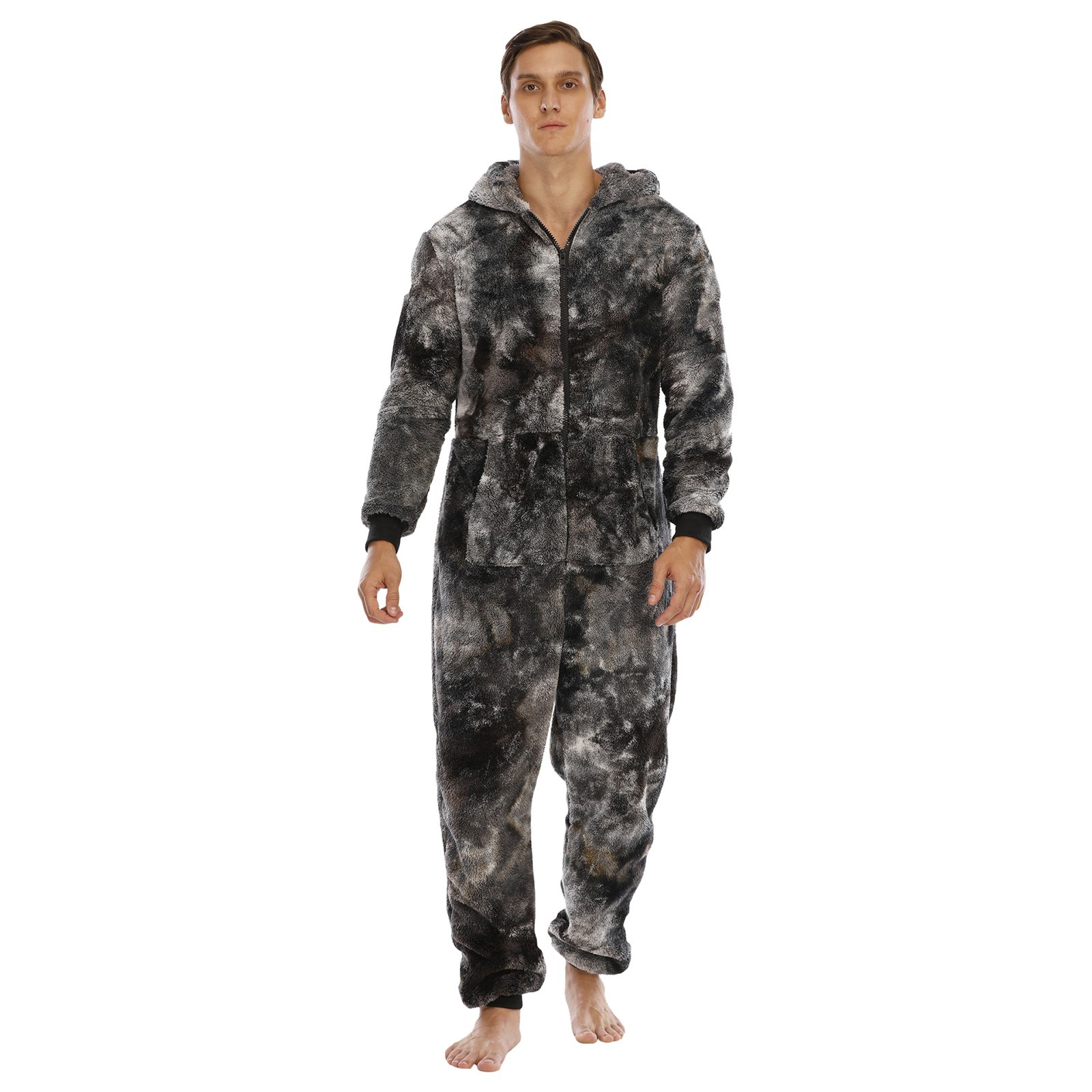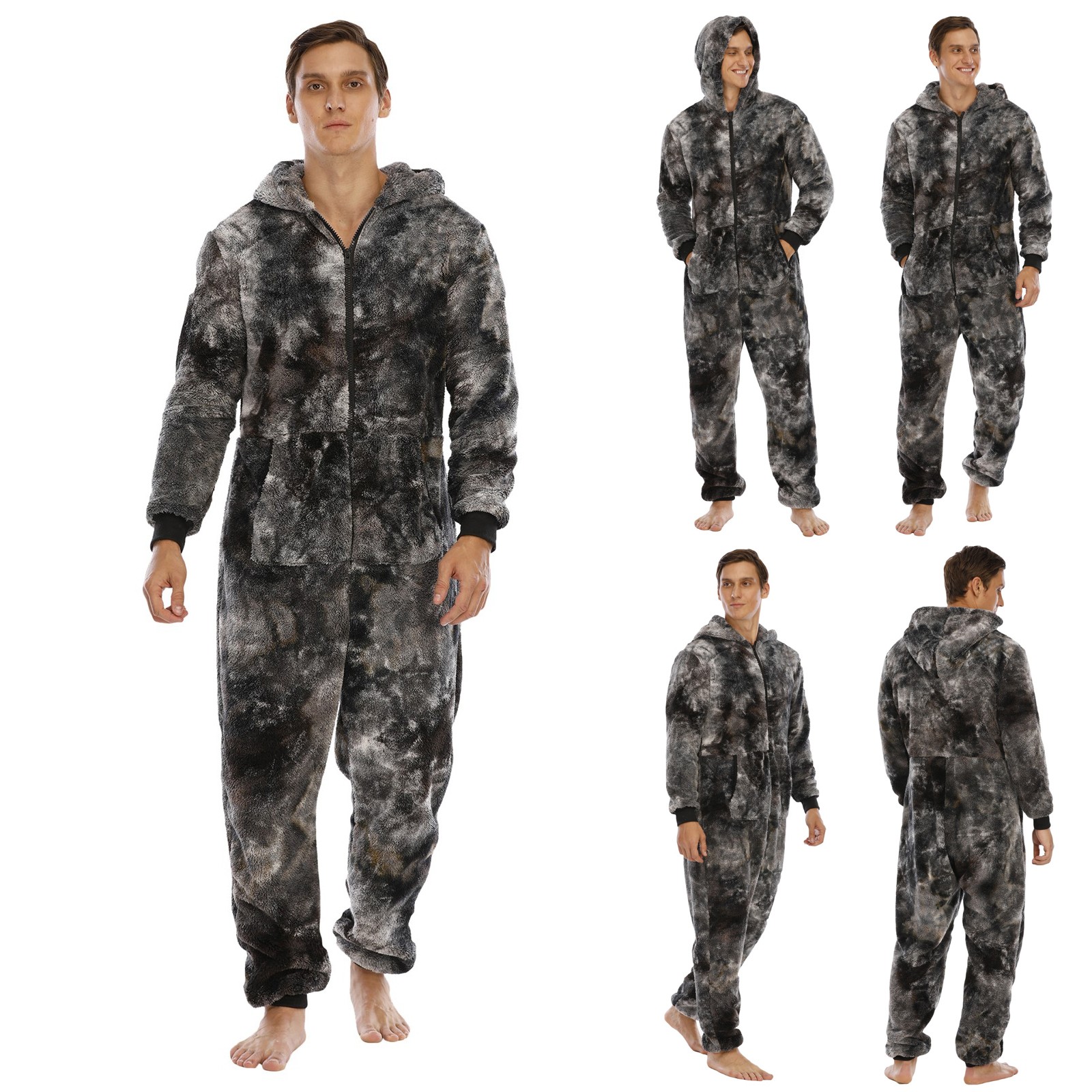 Мужской комбинезон с длинными рукавами и принтом, пижама на молнии с капюшоном, одежда для сна с карманами