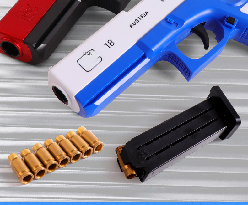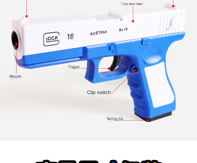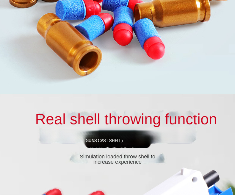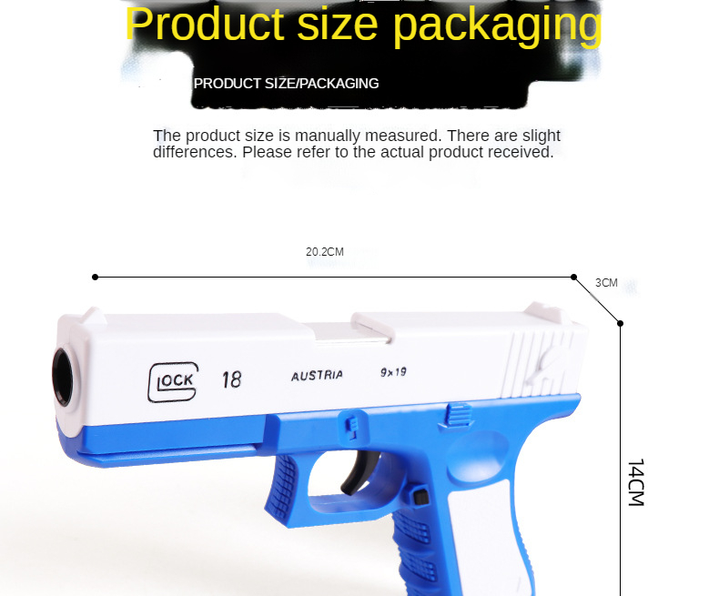 1. Игрушечный пистолет изготовлен из высококачественного АБС-пластика, анти-шок и прочный.