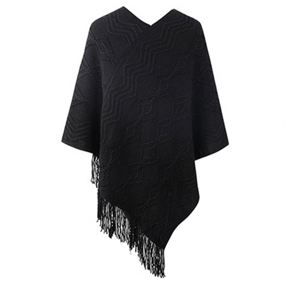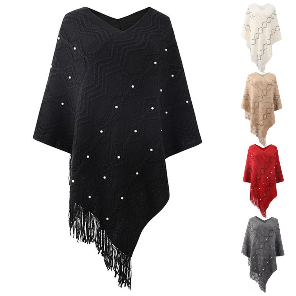 Осень-зима 2021, женские свитера, пончо, вязаные плащи, плащ, свитер, v-образный вырез, асимметричный подол, кисточки, пальто, вязаный пуловер в полоску